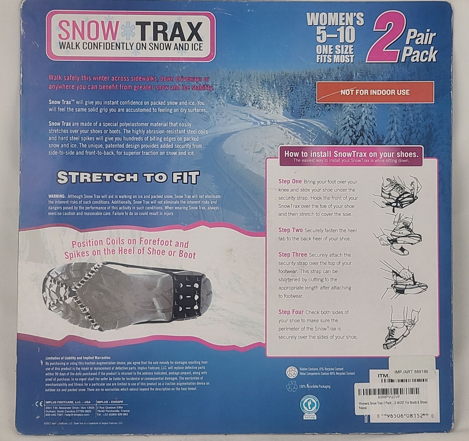 Snow Trax 2 Pair Pack Womens 5-10 Stretch To Fit Snow & Ice Footwear