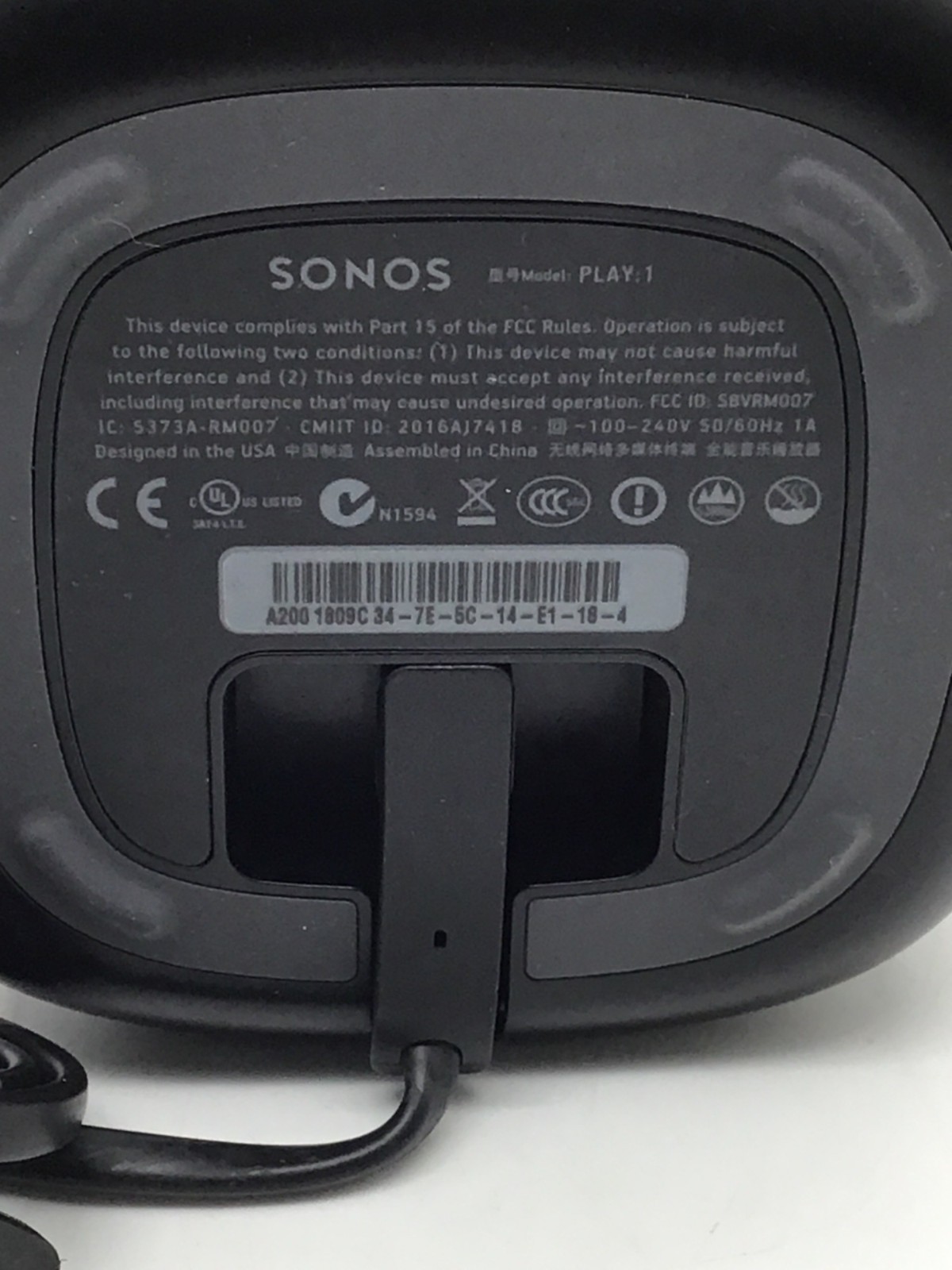 Sonos Play:1 Black Smart Compact WiFi Speaker - Powers On