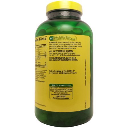 - Omega-3 softgels 200 count Heart health No fishy aftertaste Purified to remove mercury No gluten, no artificial colors, no artificial flavors, no yeast, no starch