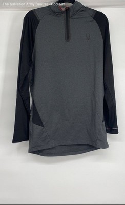 Spyder Mens Black Gray Heather Long Sleeve Activewear 1/2 Zip T-Shirt Size Large
