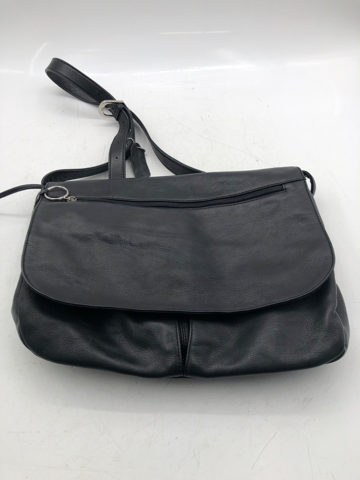 St. John's Bay 100: Cowhide Leather Black Shoulder Handbag w/ Coin Pouch