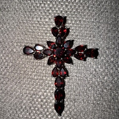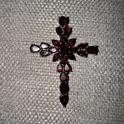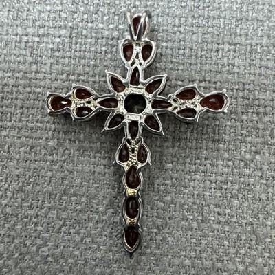 Sterling Silver 925 ( Garnet 21 )Cross Pendant 2.25" x 1.75"
