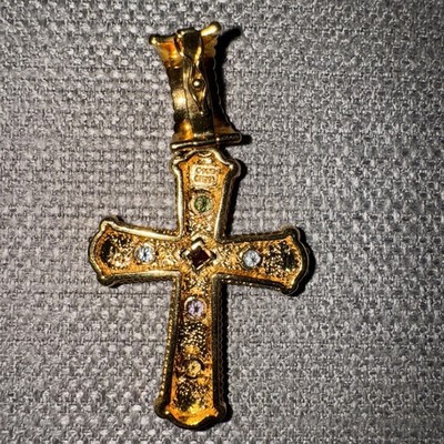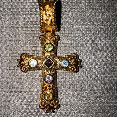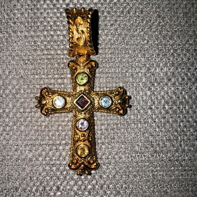 Sterling Silver 925 over Gold Gemstone cross pendant 2 3/8"