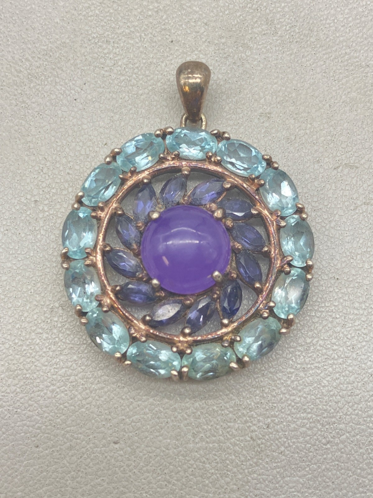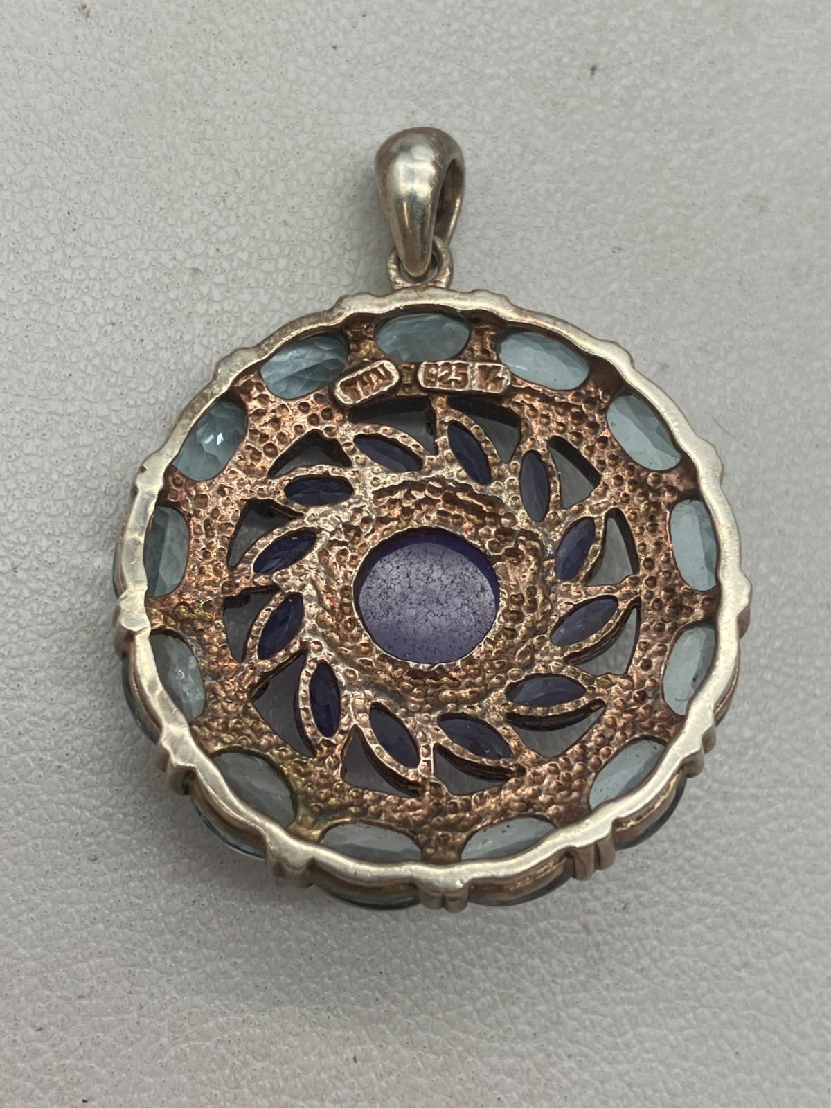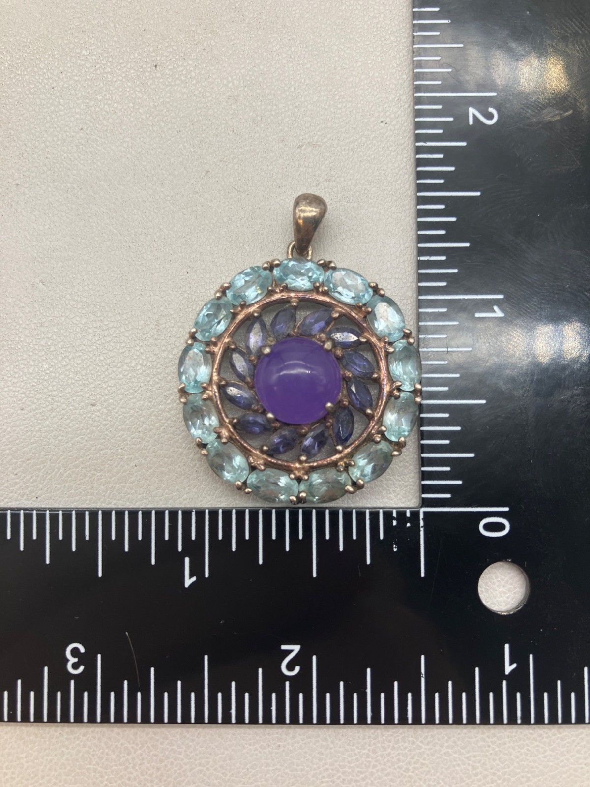 Sterling Silver Amethyst & Topaz Pendant - 9.32g