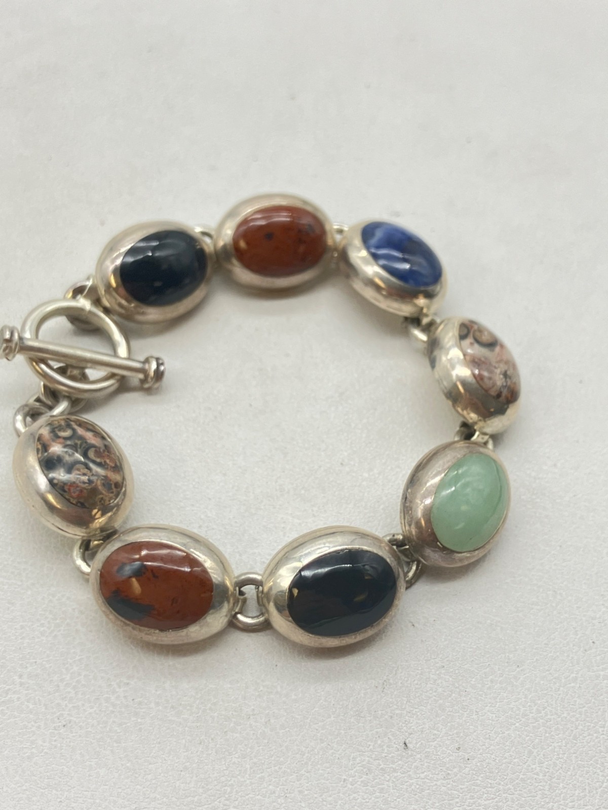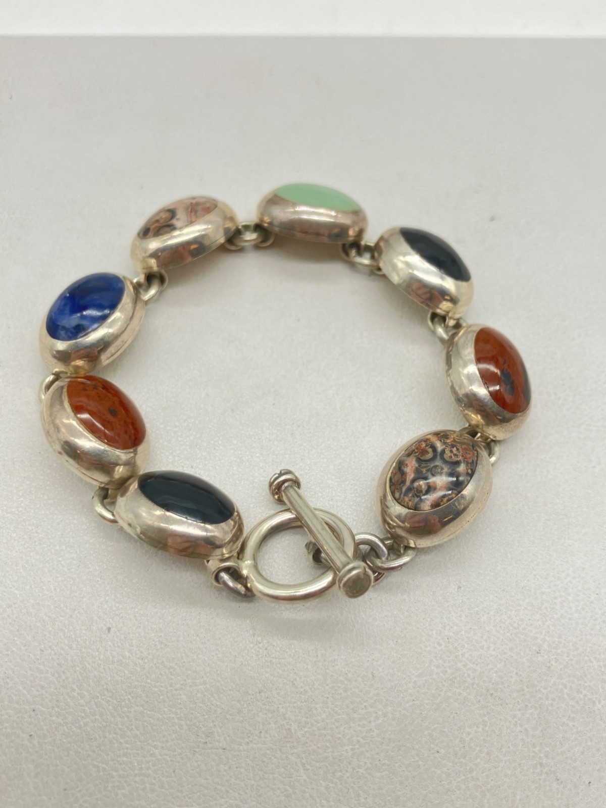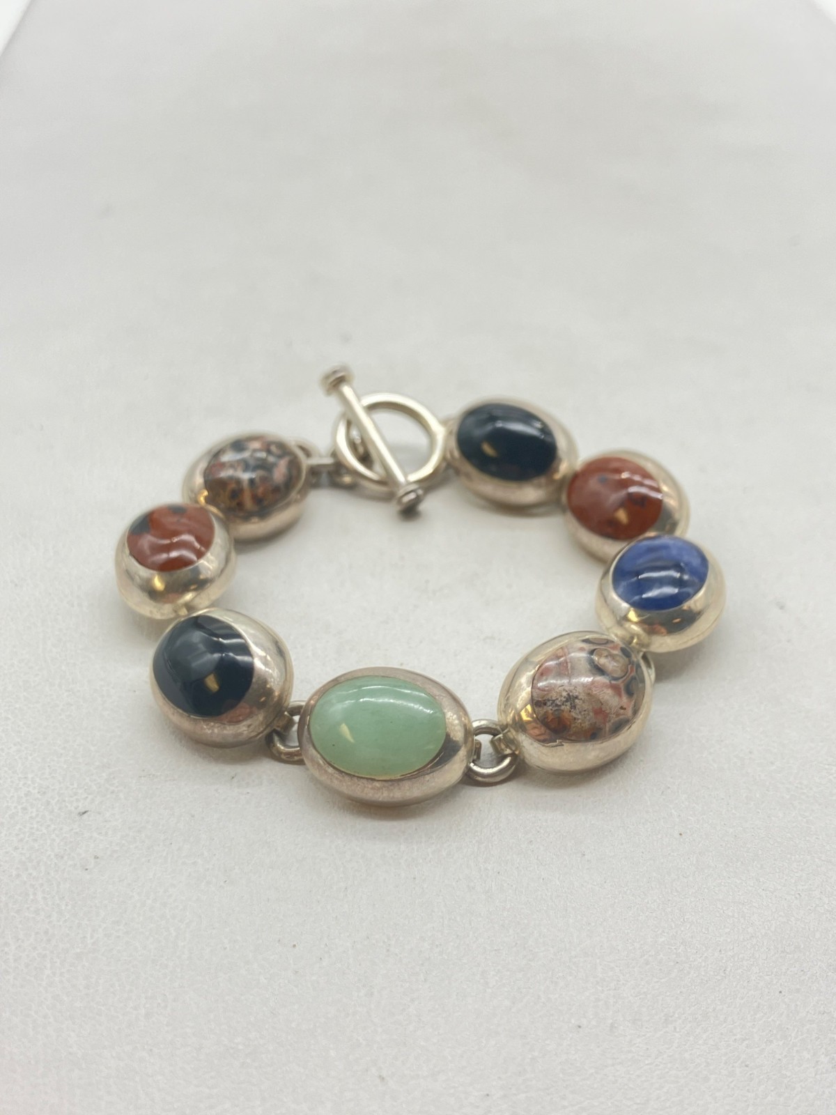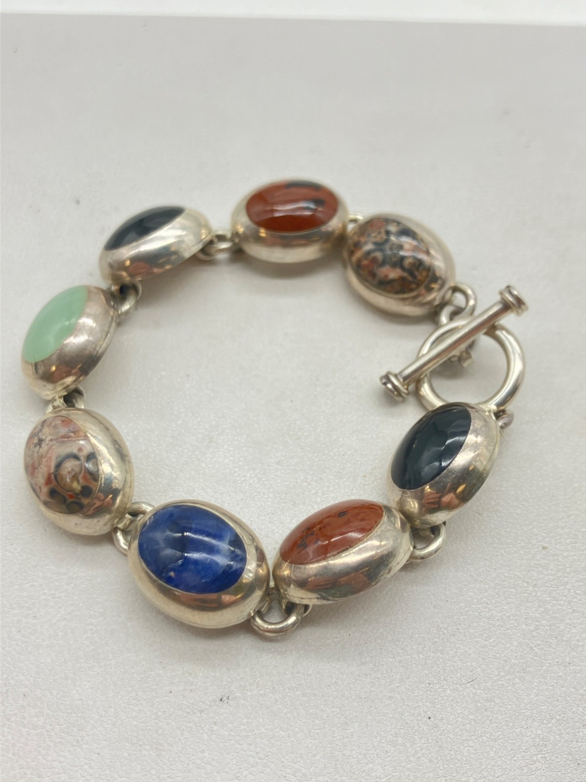 Sterling Silver Multi-Stone Bracelet 7in - 35.8g