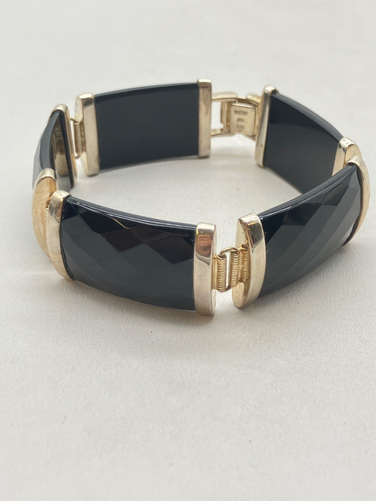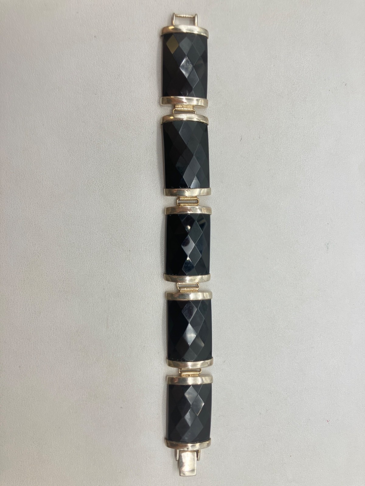 Sterling Silver Onyx Bracelet - fits 7in wrist - 45.8g