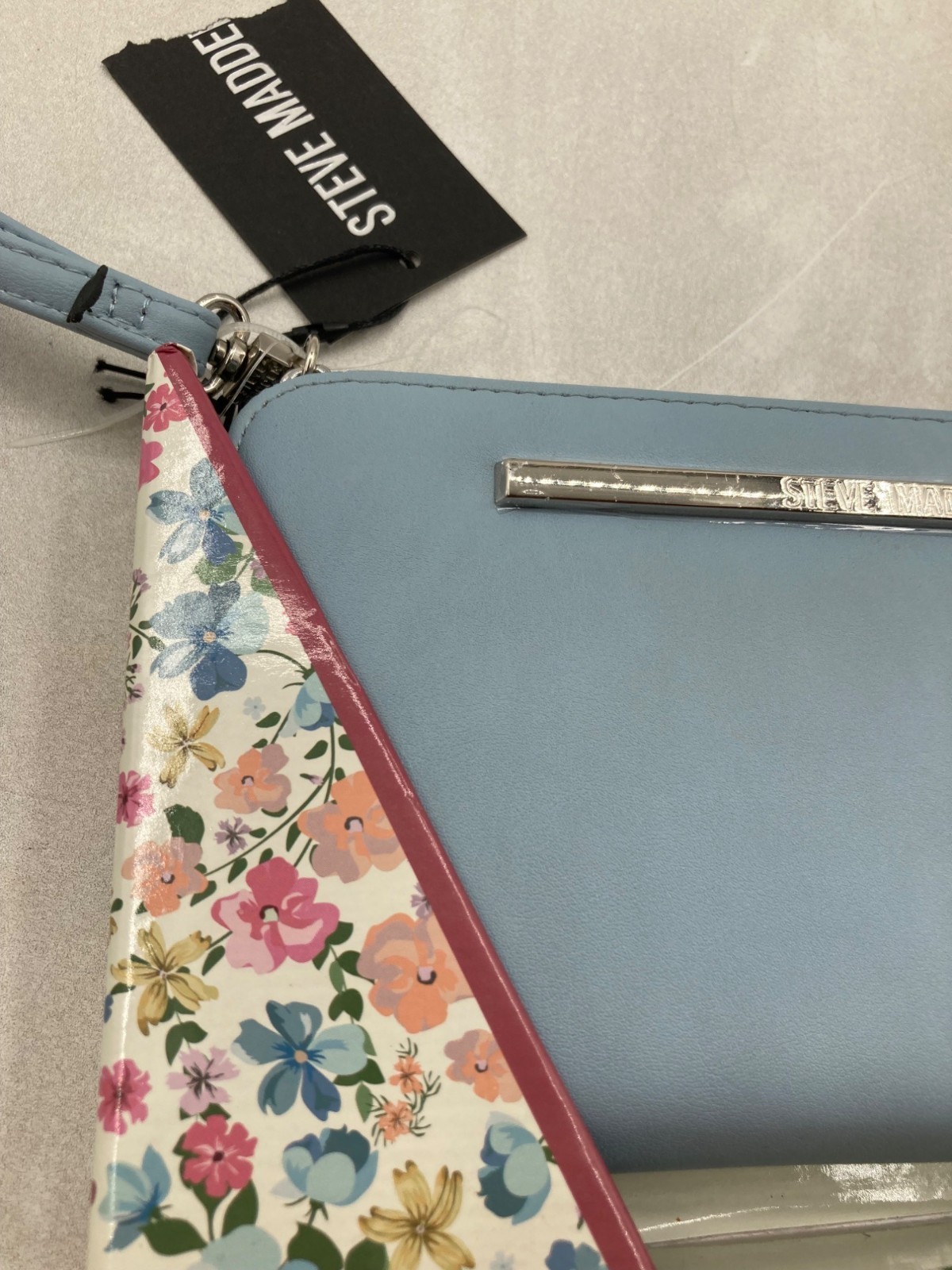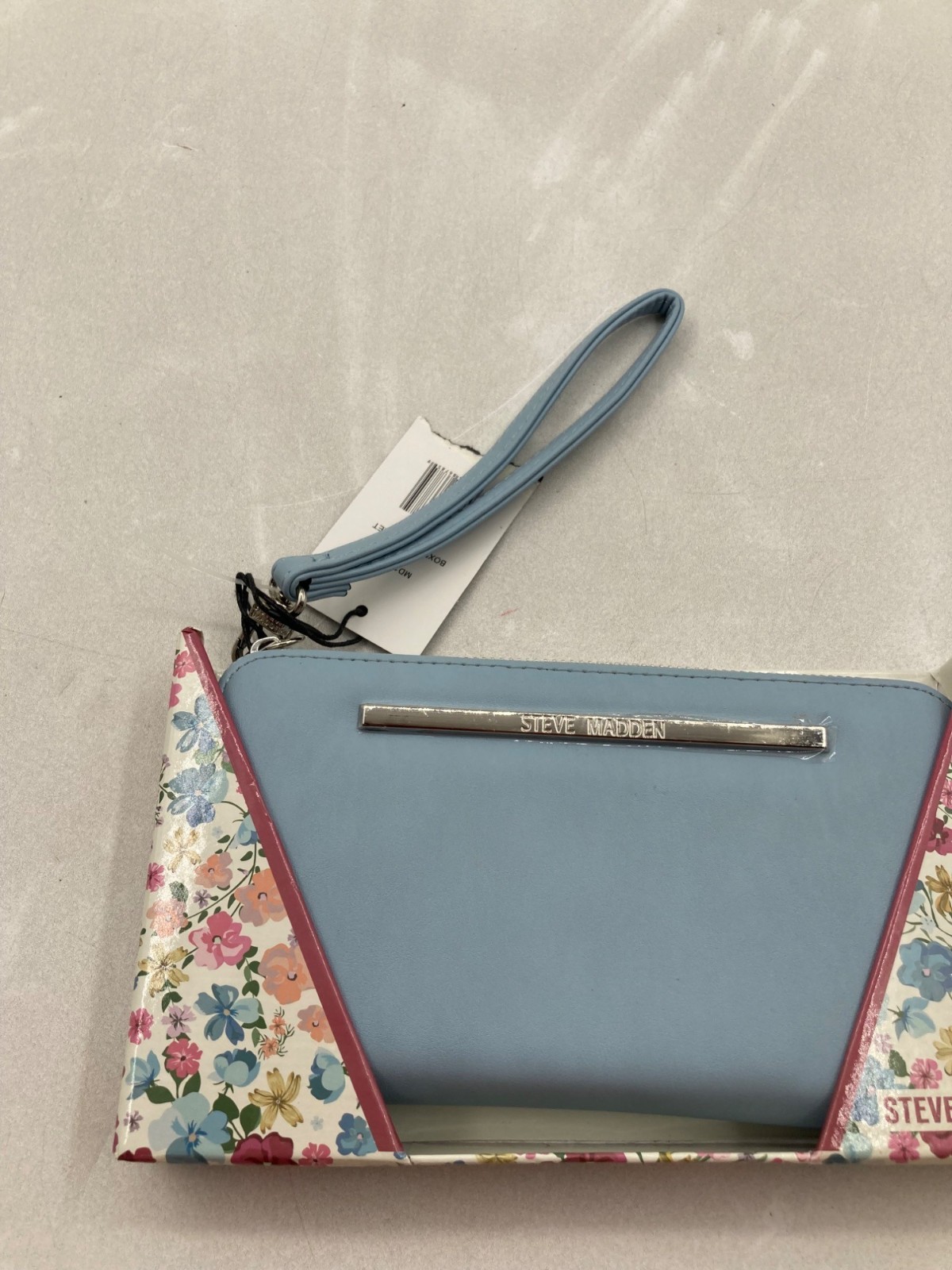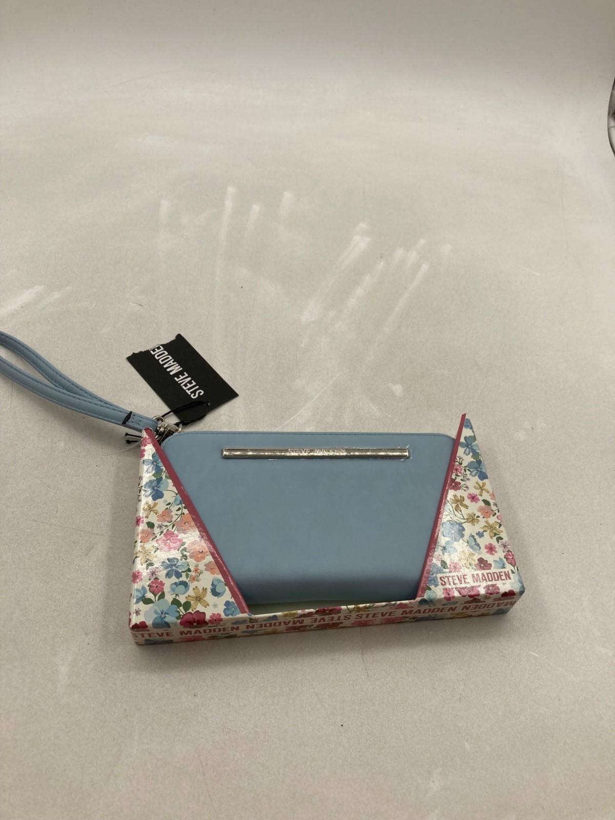 Steve Madden Light Blue Wristlet Clutch With Floral Box & Tags