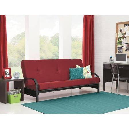 Sturdy Black Metal Arm Frame Futon with 6 Mattress, Red by Mainstays