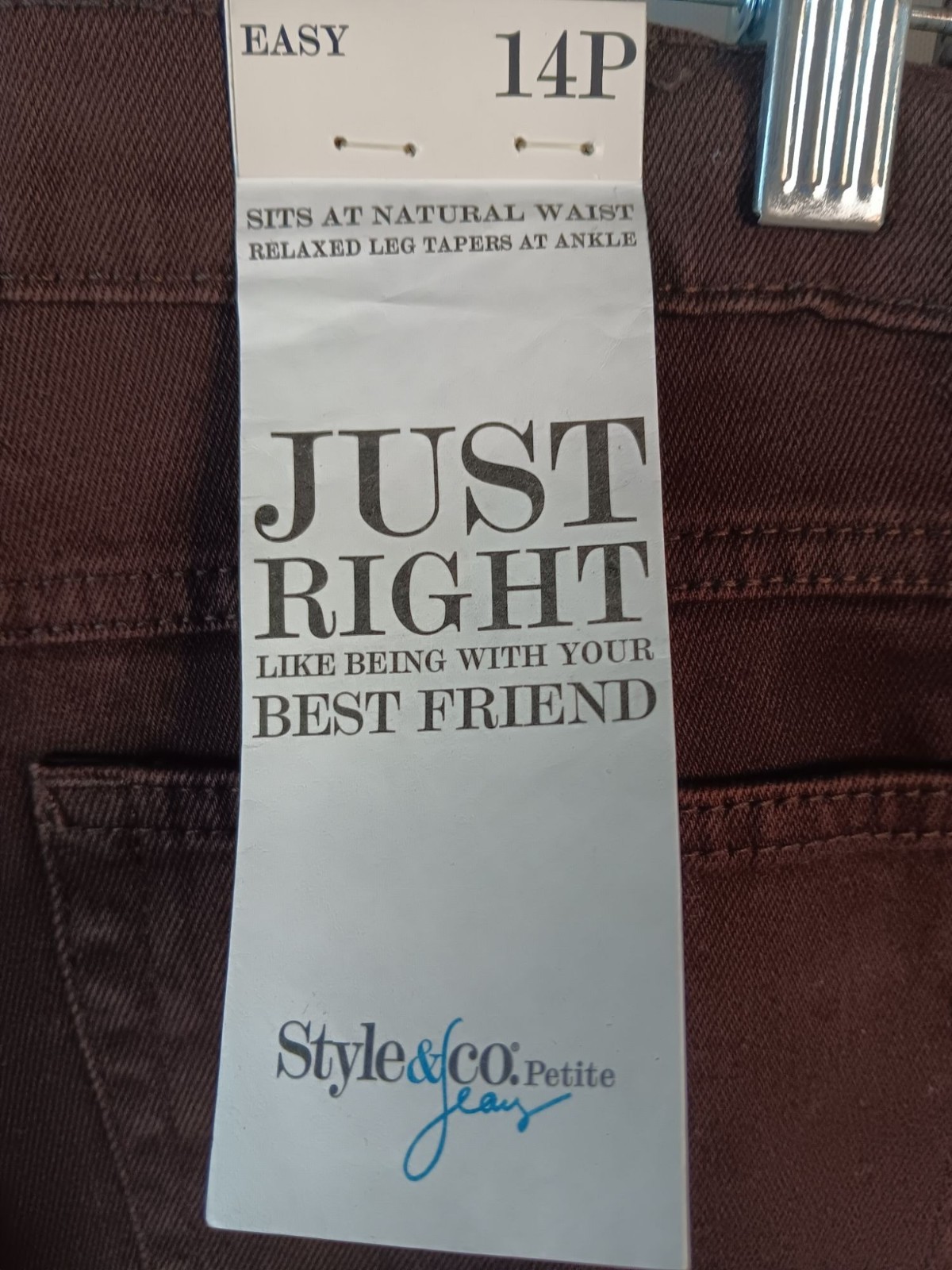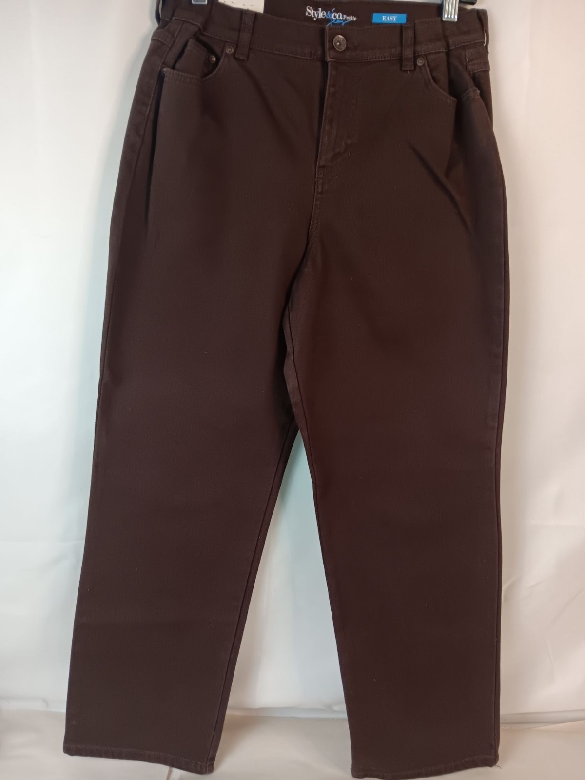 Style & Co Petite Easy Fit Brown Denim Jeans 14P Natural Waist Relaxed Leg