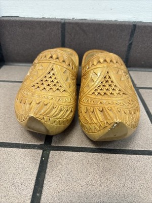 SUPER DETAILED HAND CARVED DUTCH WOODEN CLOGS — VERY INTRICATE DESIGN! Size 40