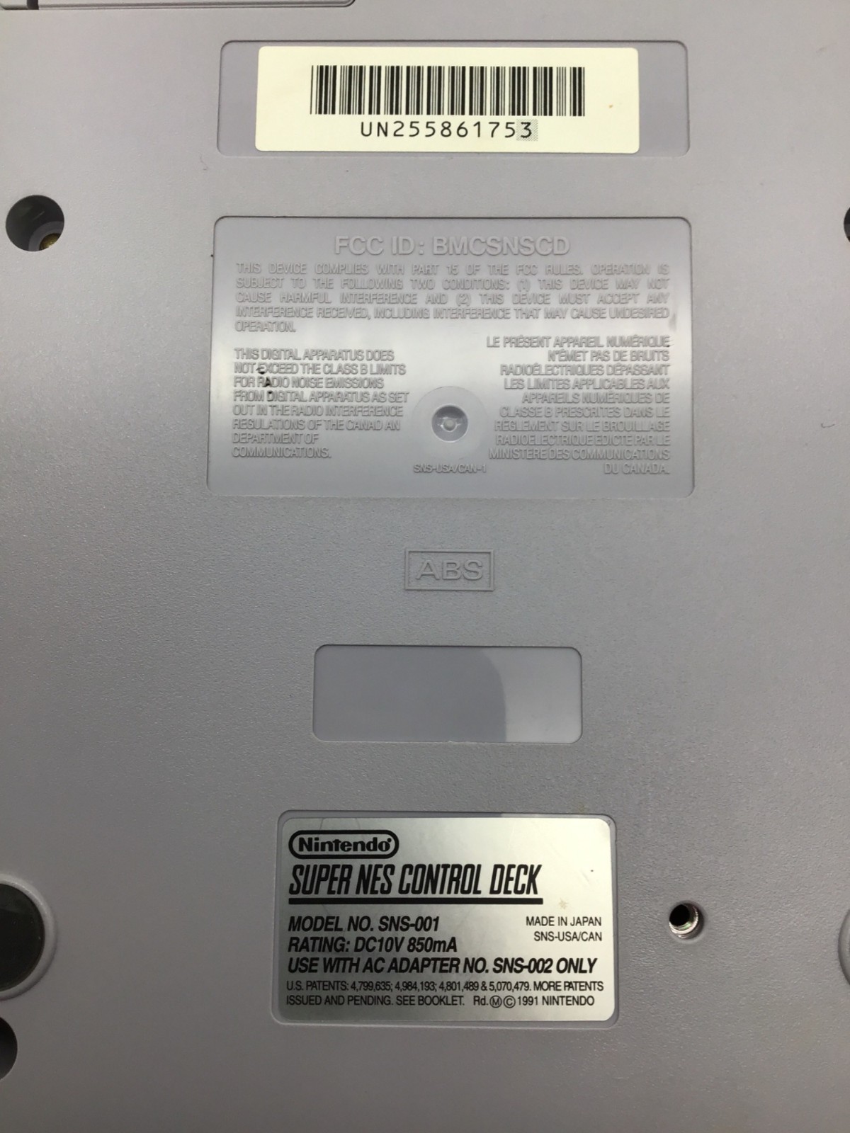 Super Nintendo SNES Control Deck SNS-001 w/ AC Adapter - For Parts Or Repair