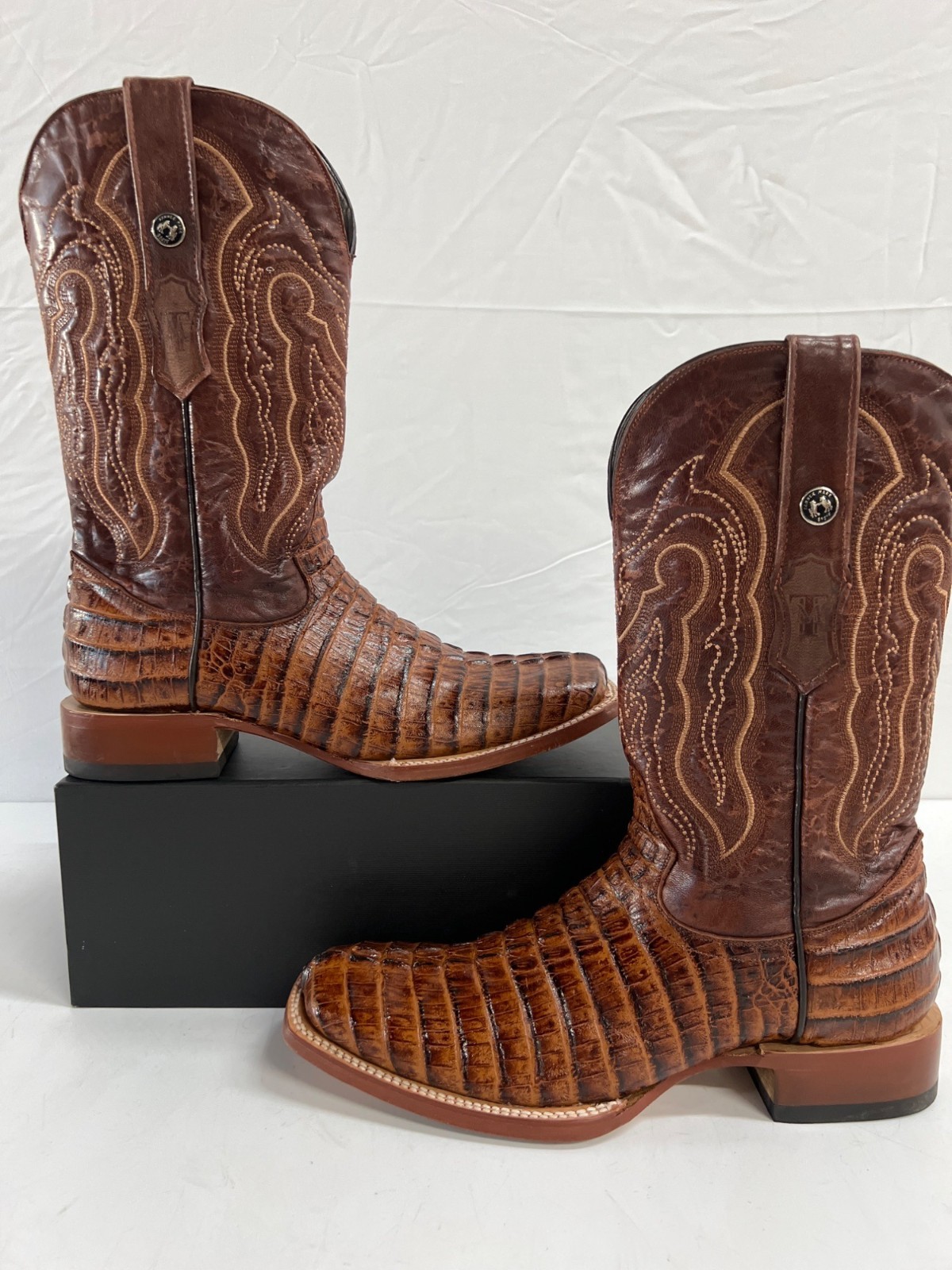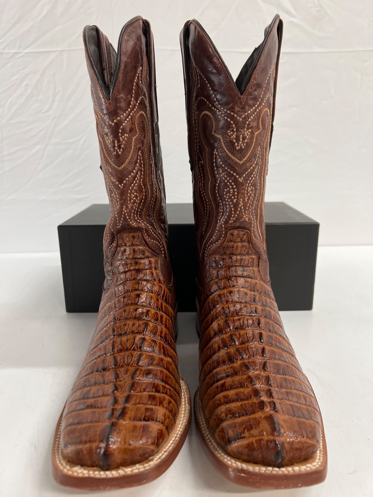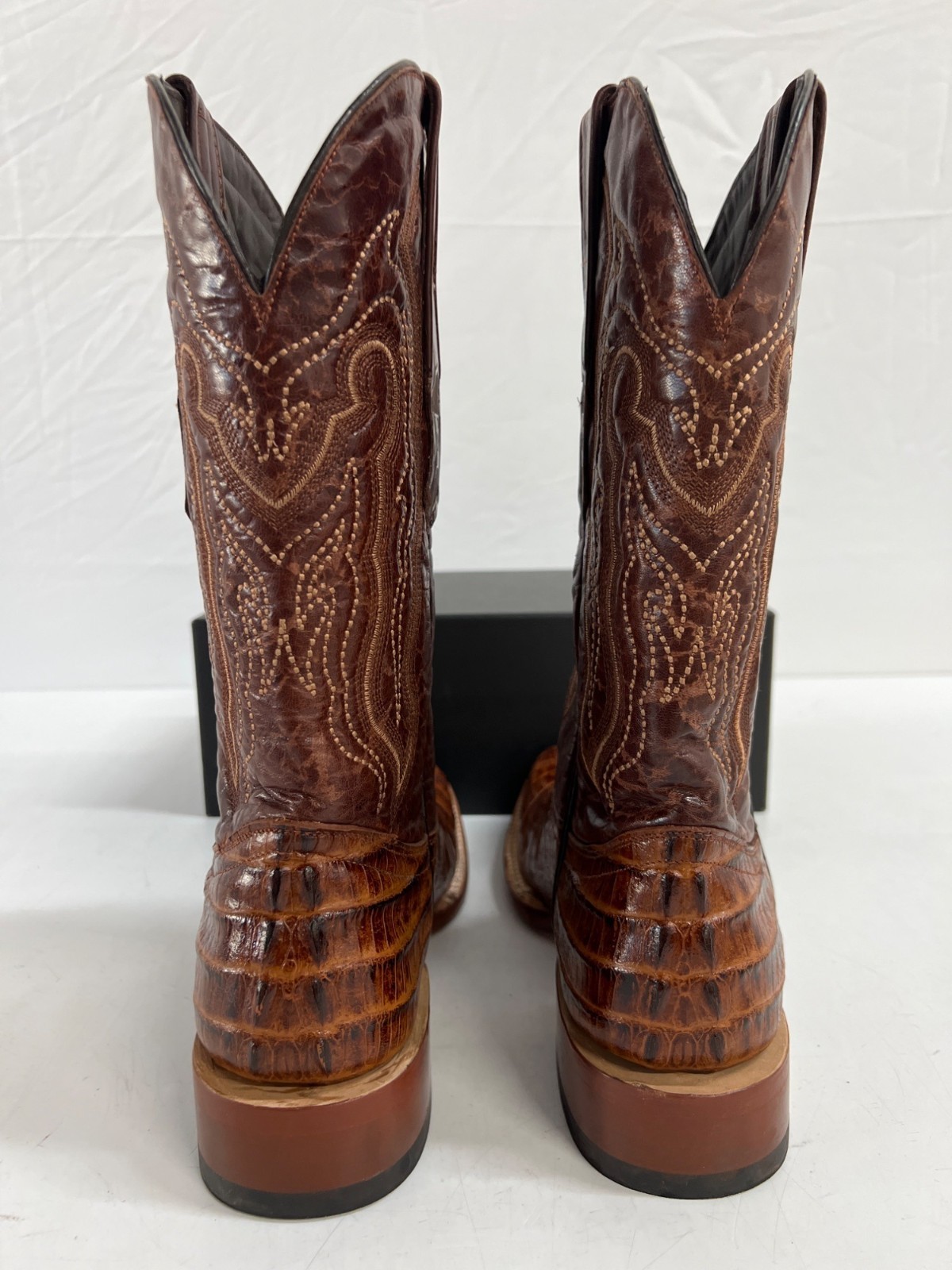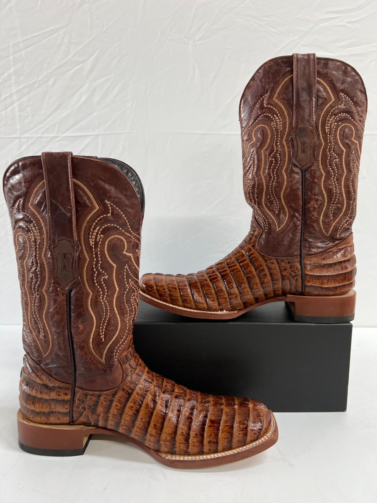 Tanner Mark TM201703 Brown Leather Square Toe Mens Cowboy Western Boots -Size 10