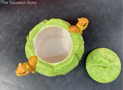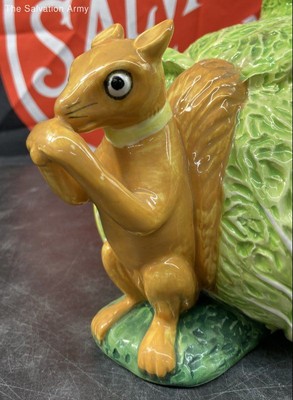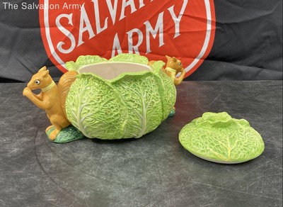 Taste Setter Ceramic 70's Retro Lettuce Cabbage With Squirrels Lidded Cookie Jar