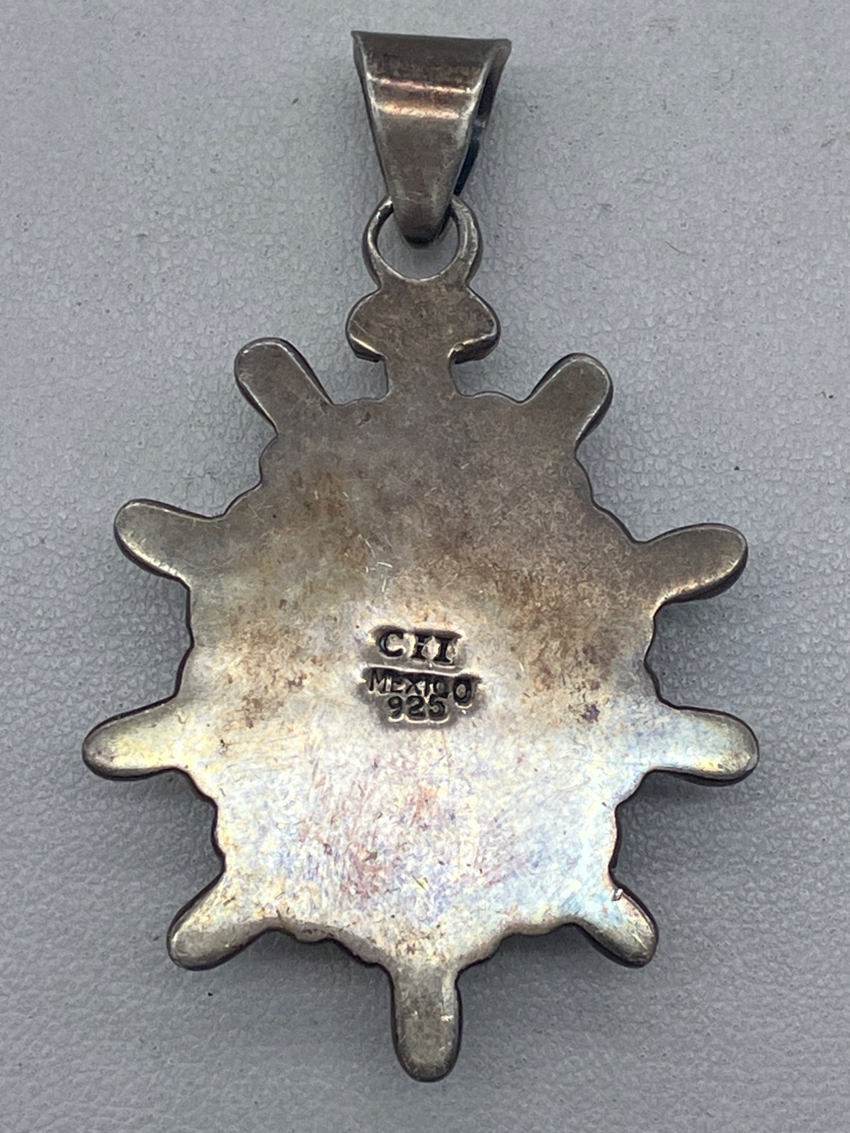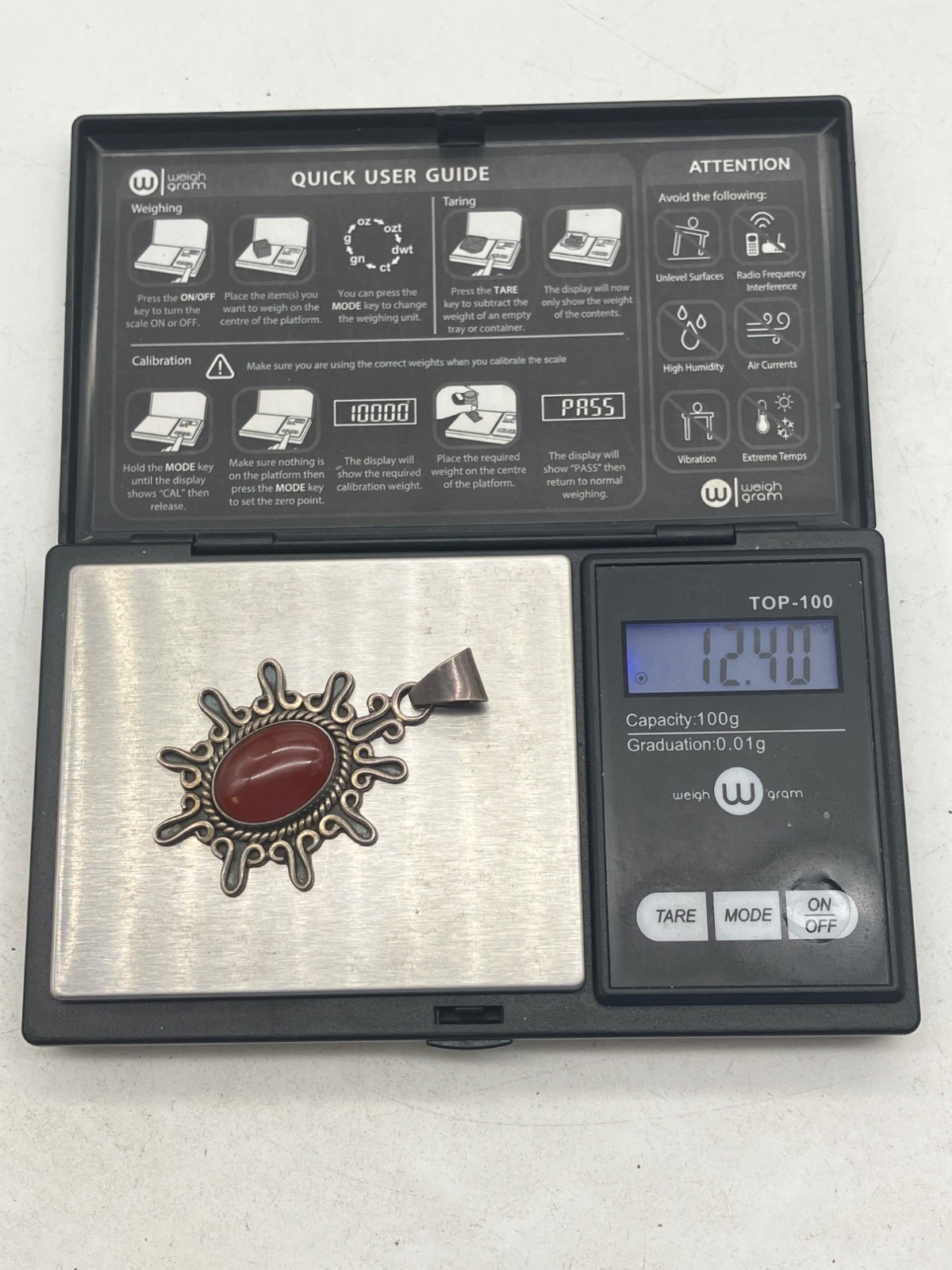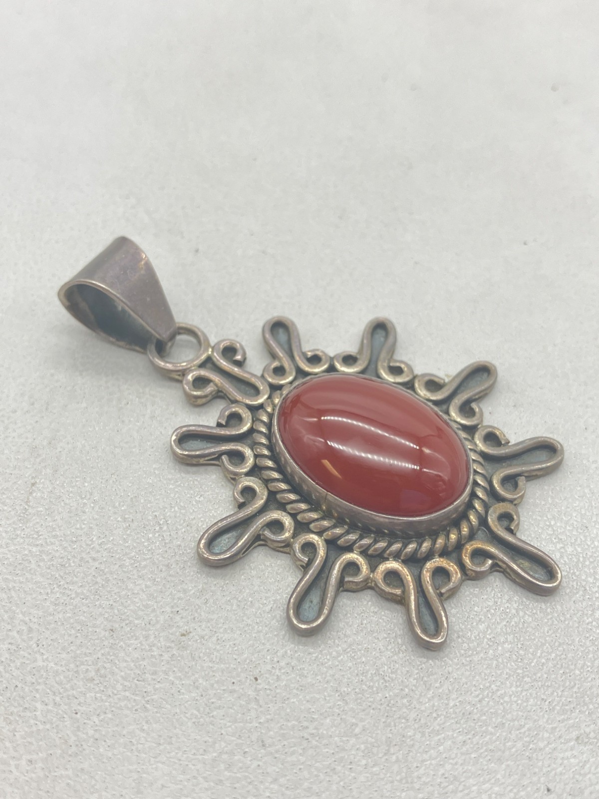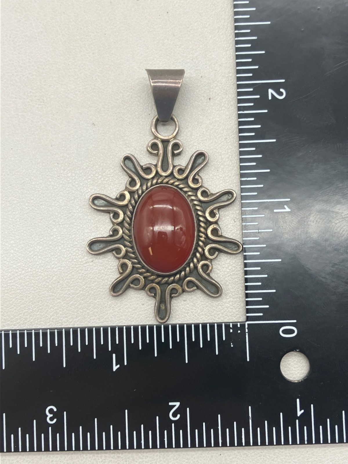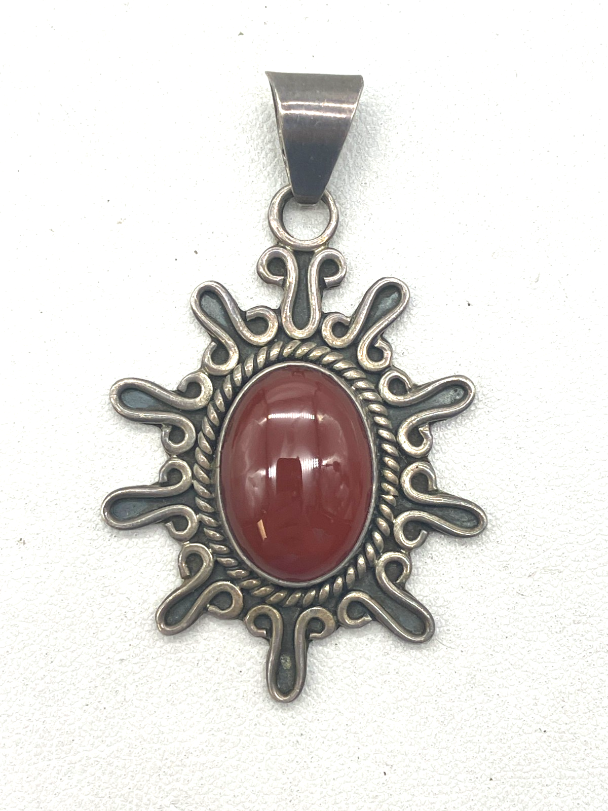 Taxco Sterling Silver Carnelian Sun Burst Pendant - 12.39g