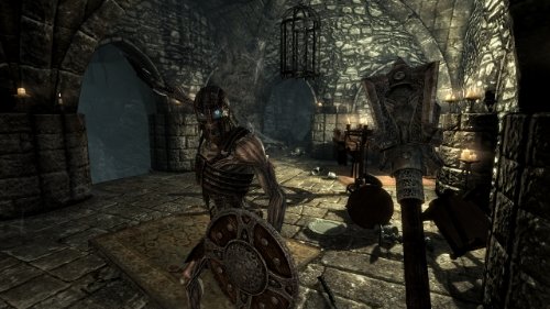 - Skyrim's new game engine brings to life a complete virtual world with rolling clouds, rugged mountains and ancient dungeons