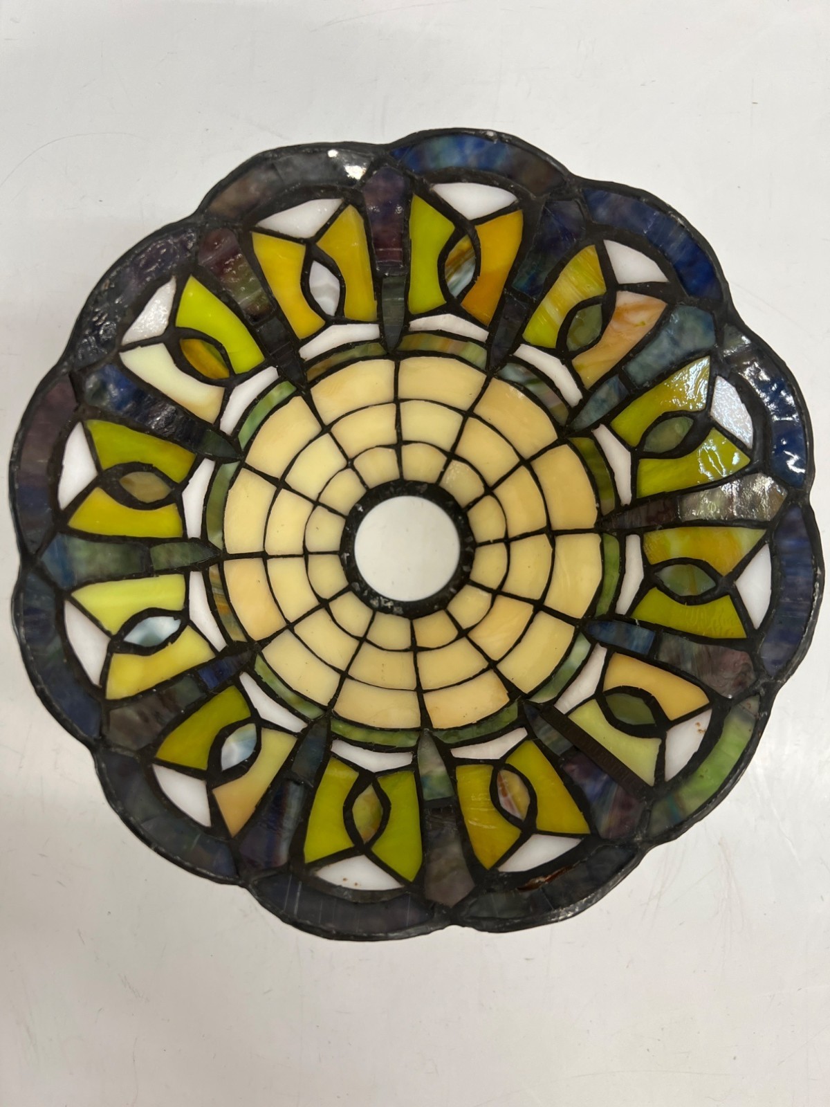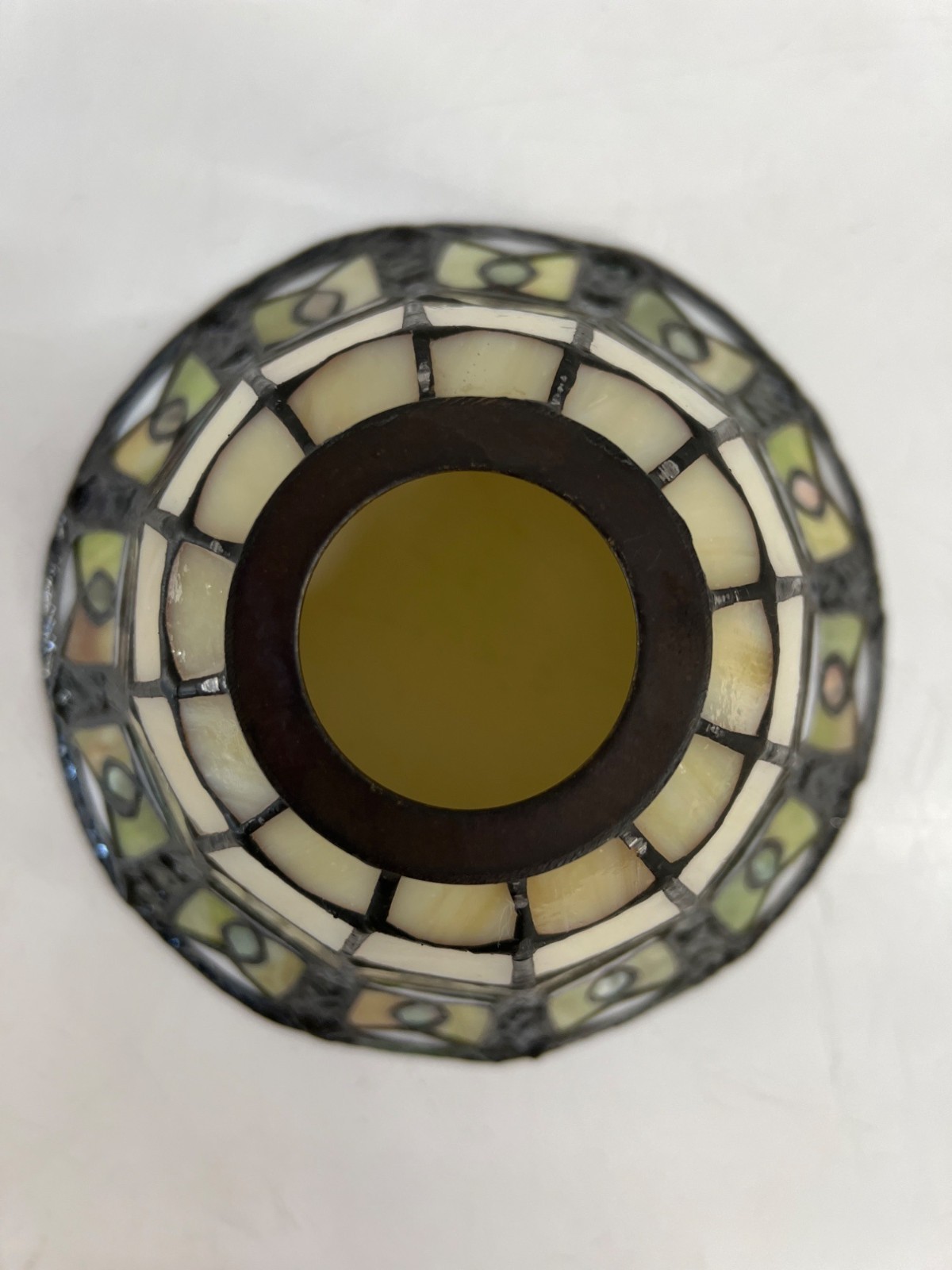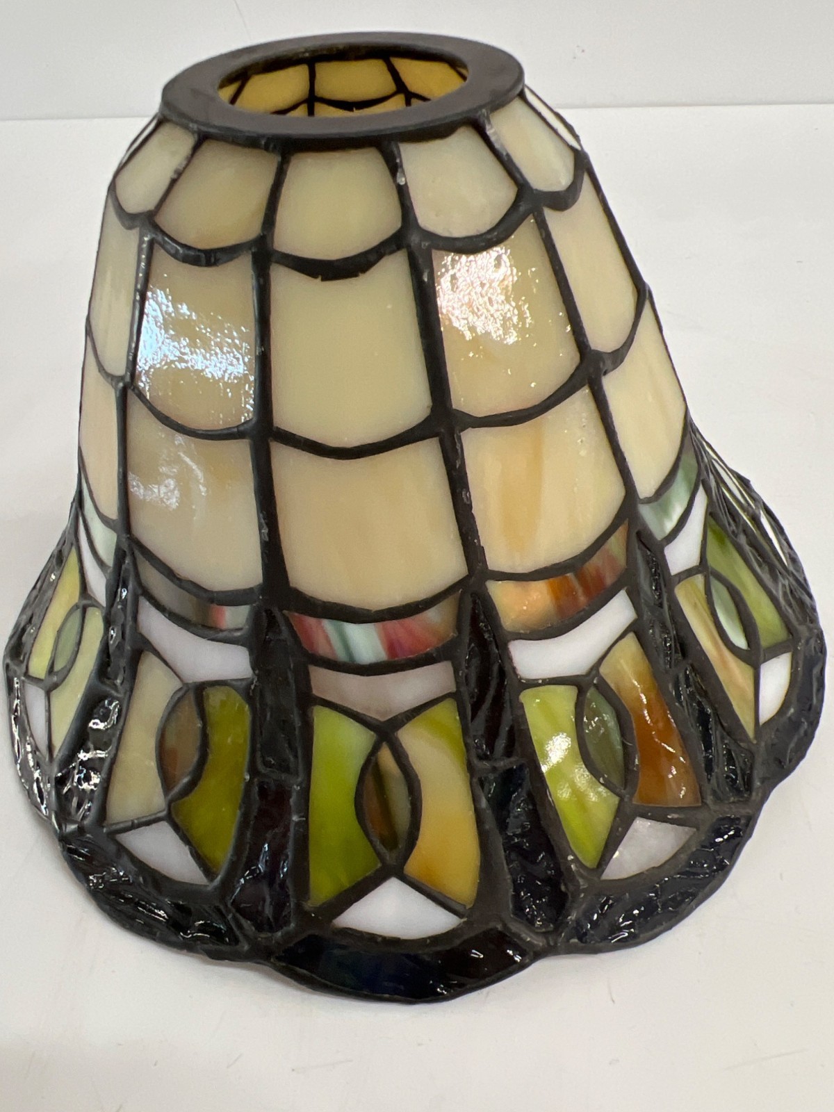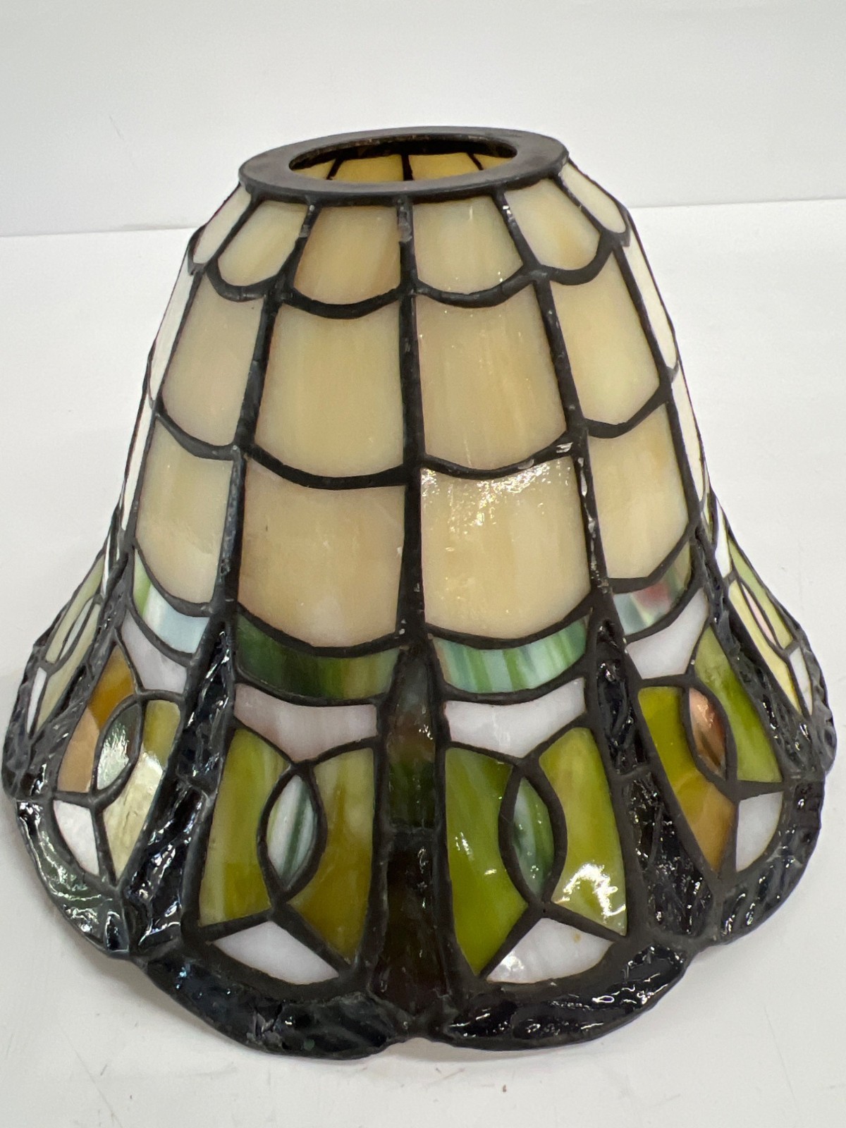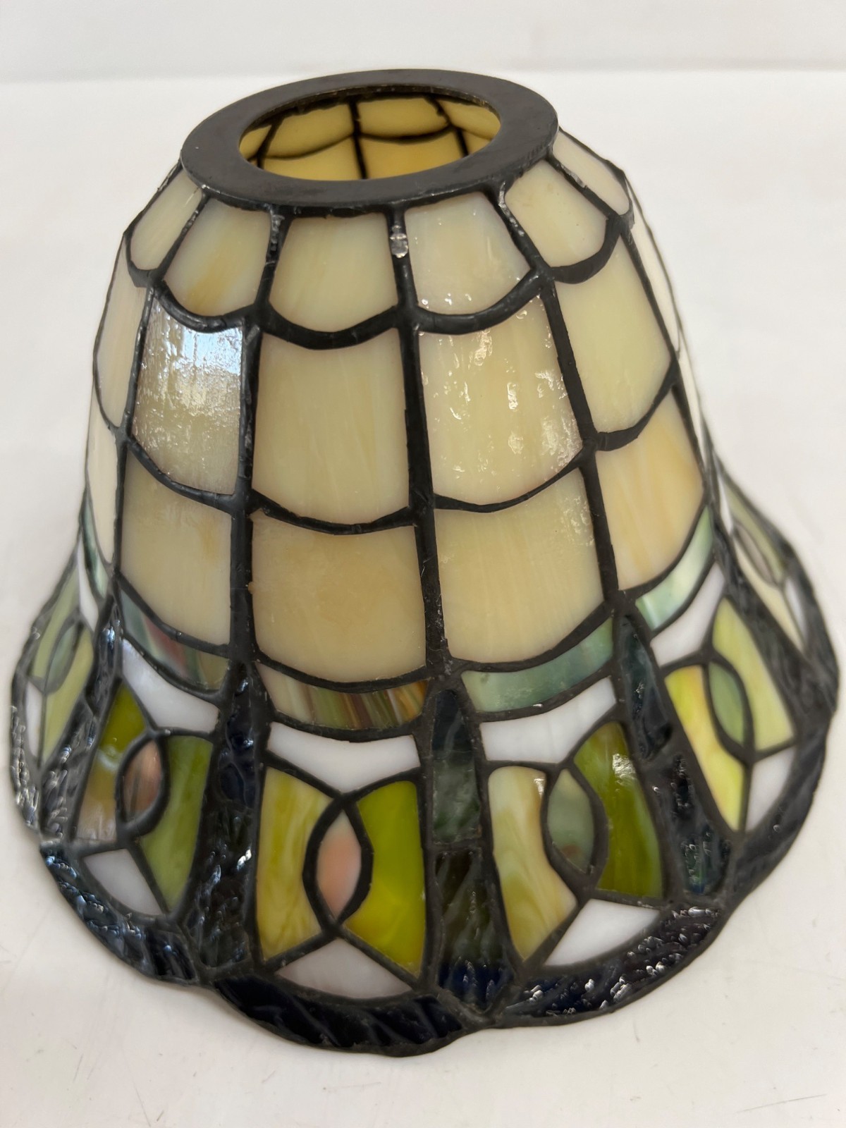 Tiffany Style Green & White Stained Glass Bell Shaped Side Table Lamp Shade