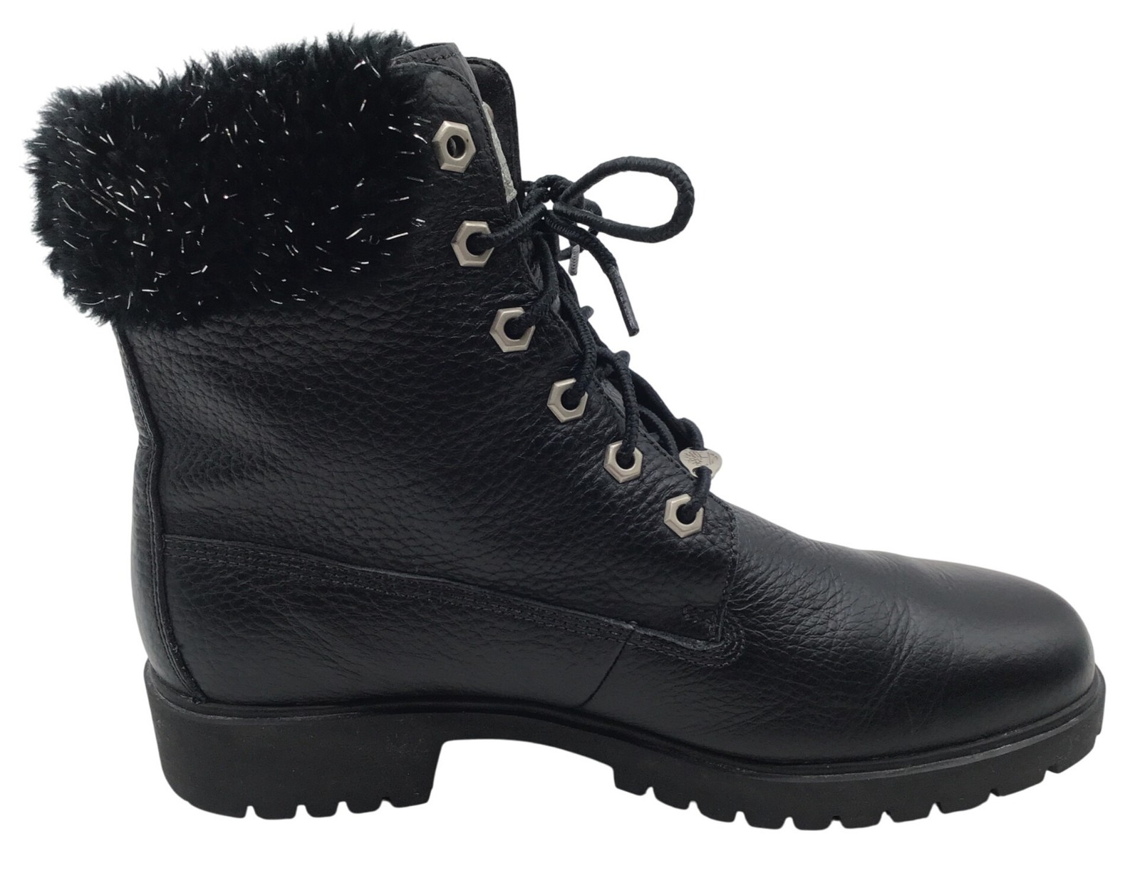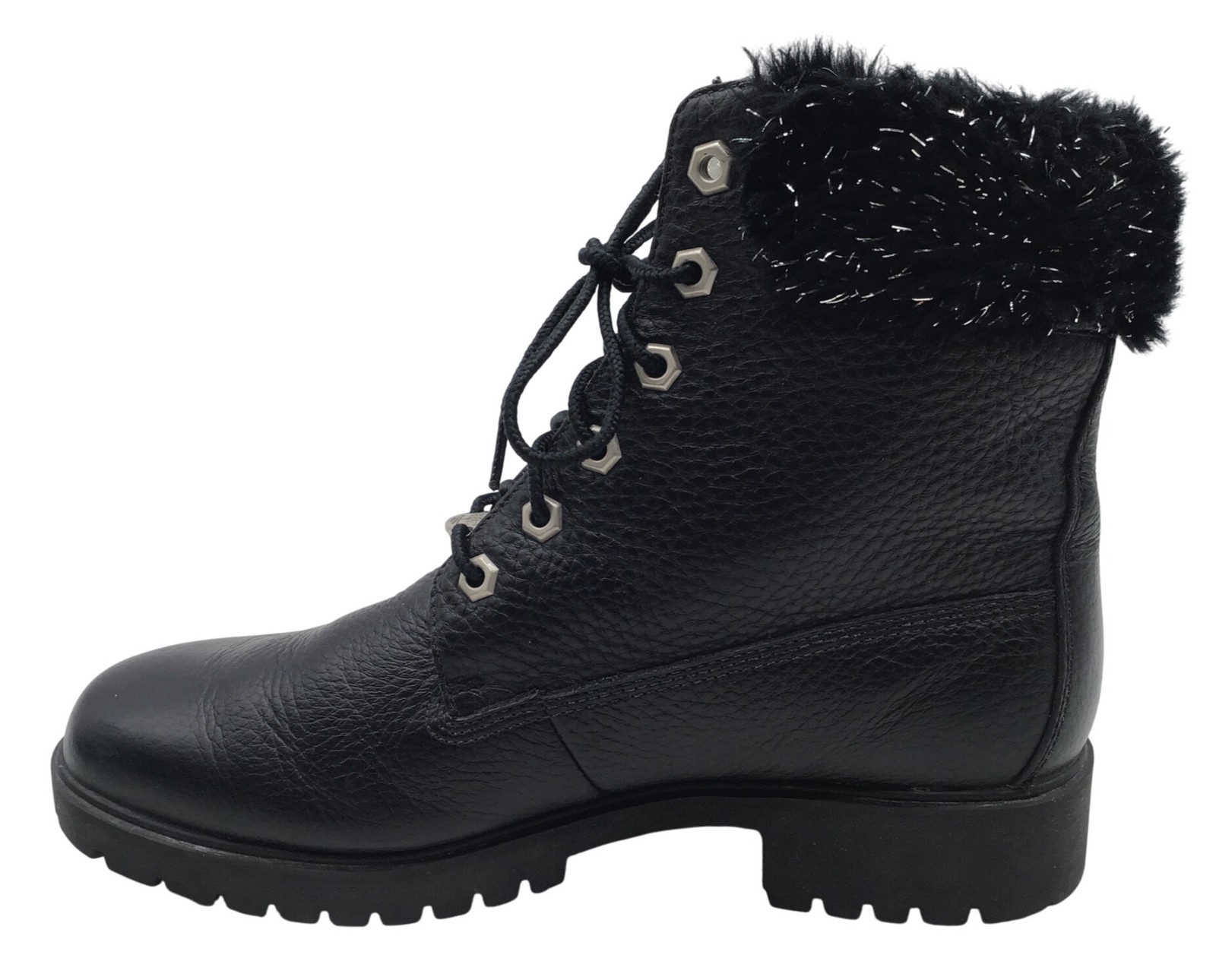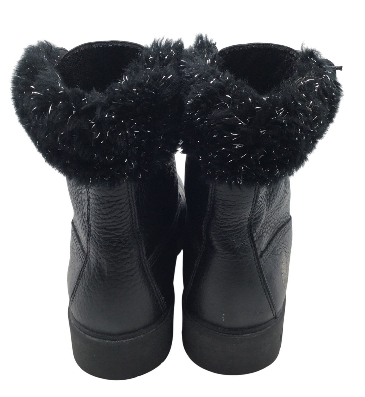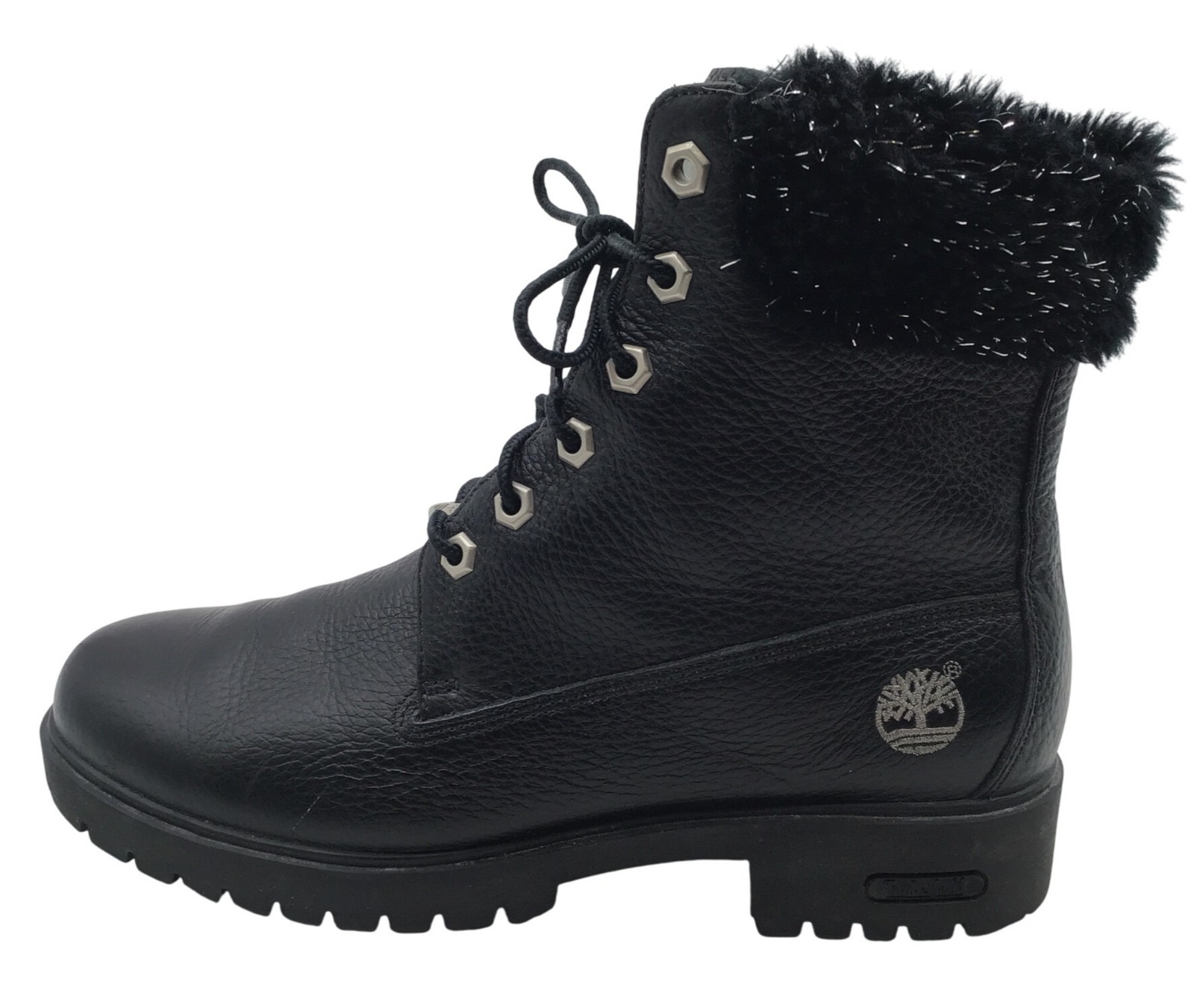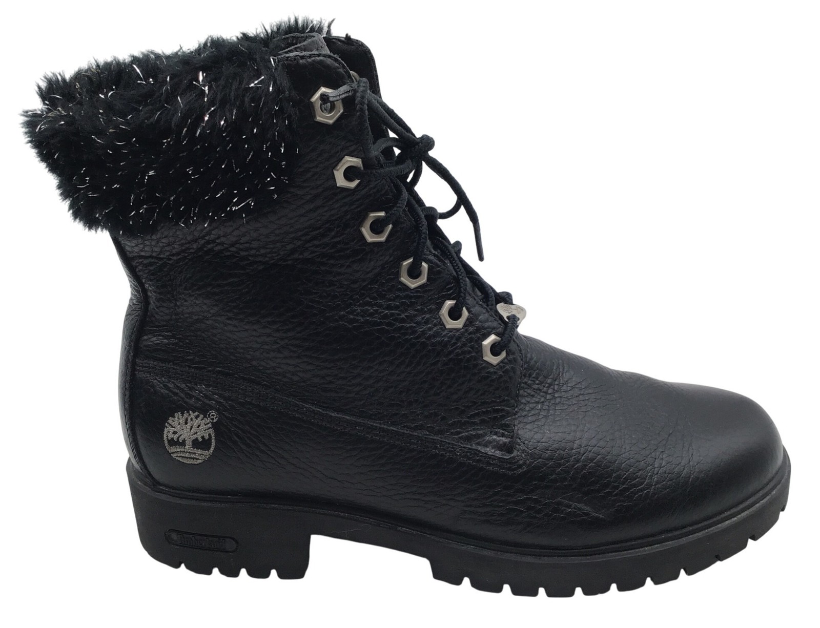 Timberland Women's Black Leather Winter Boots With Faux Fur Trim Size 9M