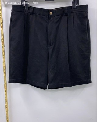 Tommy Bahama Mens Black Silk Pleated Front Pockets Chino Shorts Size 36