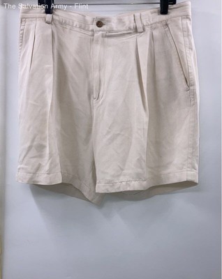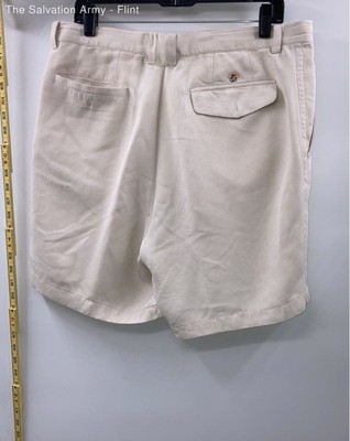 Tommy Bahama Mens Ivory Silk Pleated Front Slash Pocket Chino Shorts Size 35