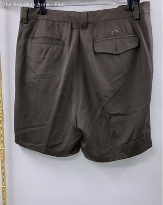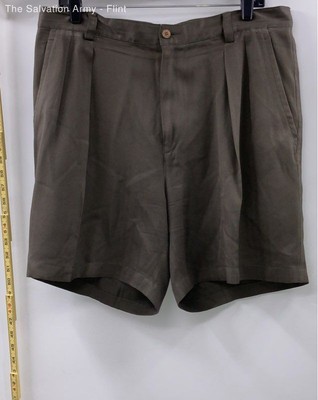 Tommy Bahama Mens Tan Silk Pleated Front Slash Pocket Chino Shorts Size 35