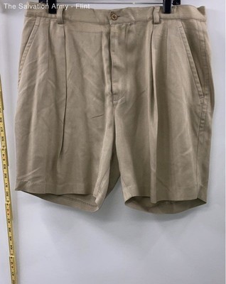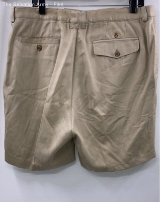 Tommy Bahama Mens Tan Silk Pleated Front Slash Pocket Chino Shorts Size 36