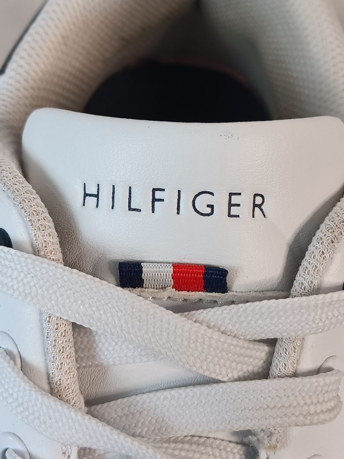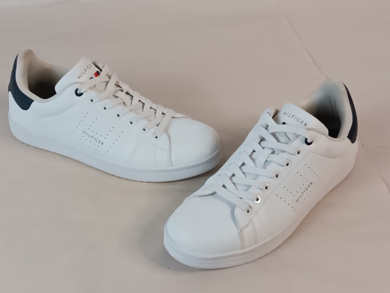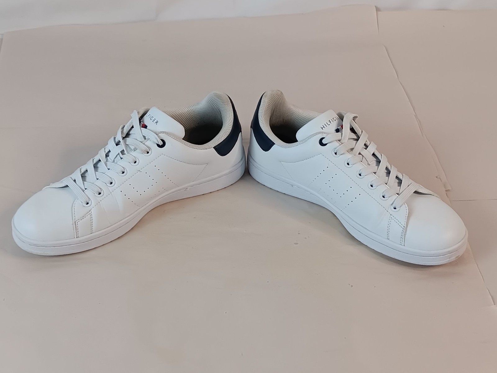 Tommy Hilfiger Mens 11 White Sneakers With Navy Accents