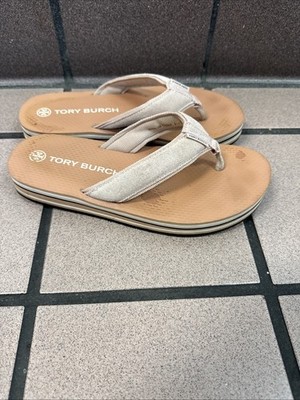 Tory Burch 70s Retro Flat Platform Flip Flops Sandals Mallow Pink Tan Sz 9m