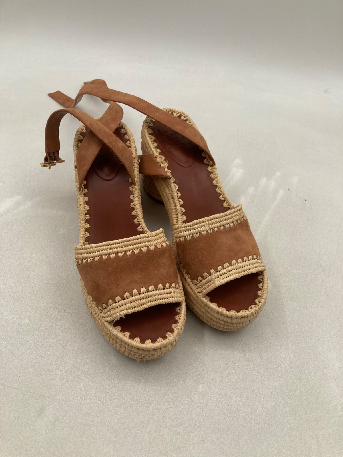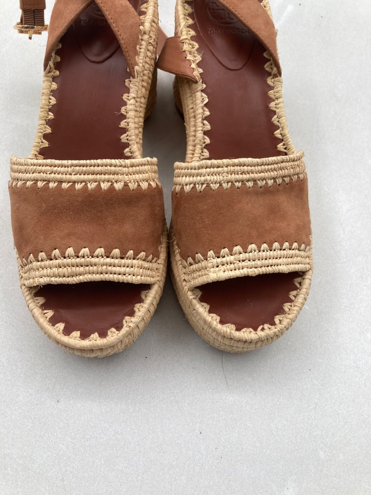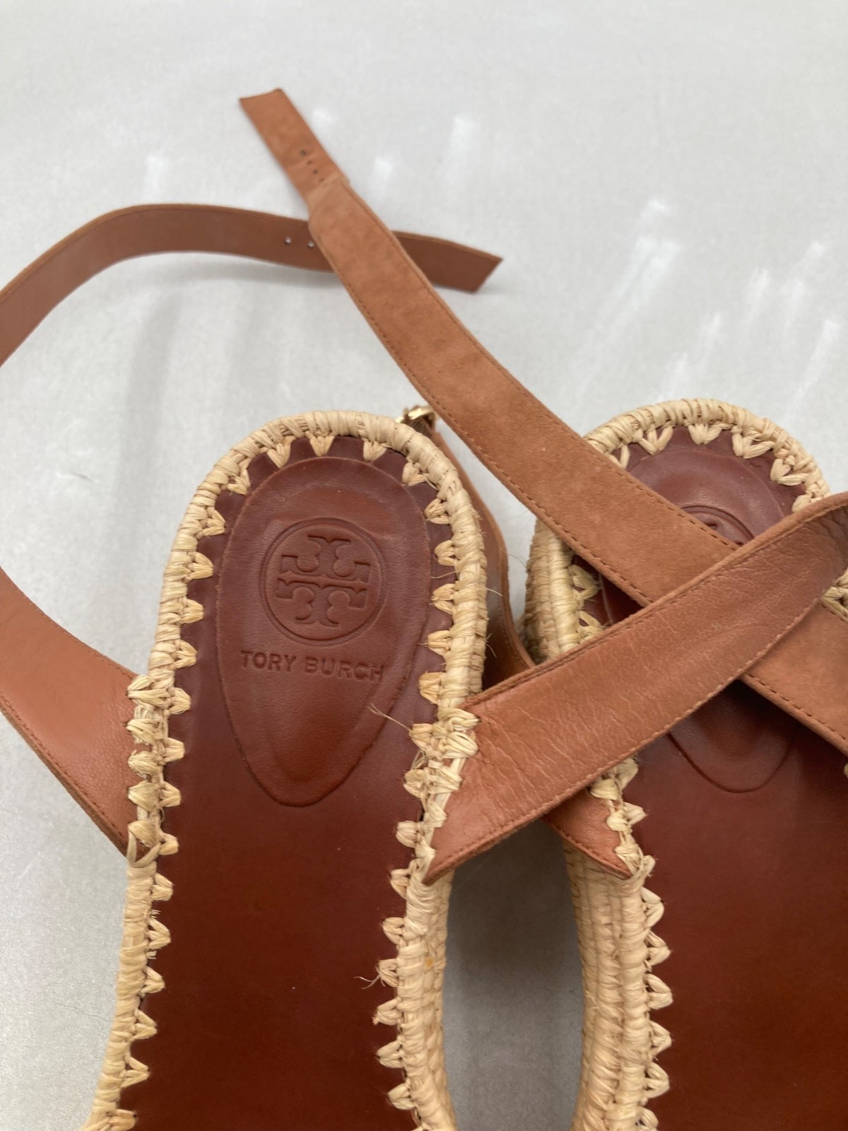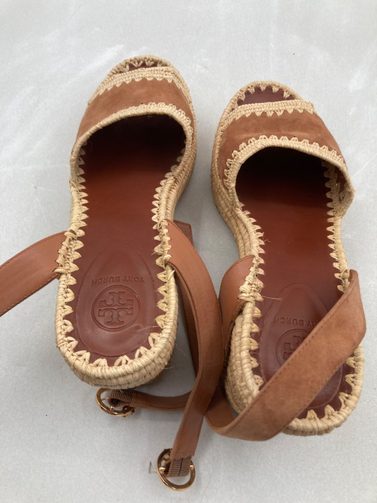 TORY BURCH ARIANNE PLATFORM ANKLE STRAP SANDALS SIZE 9M BROWN IN COLOR