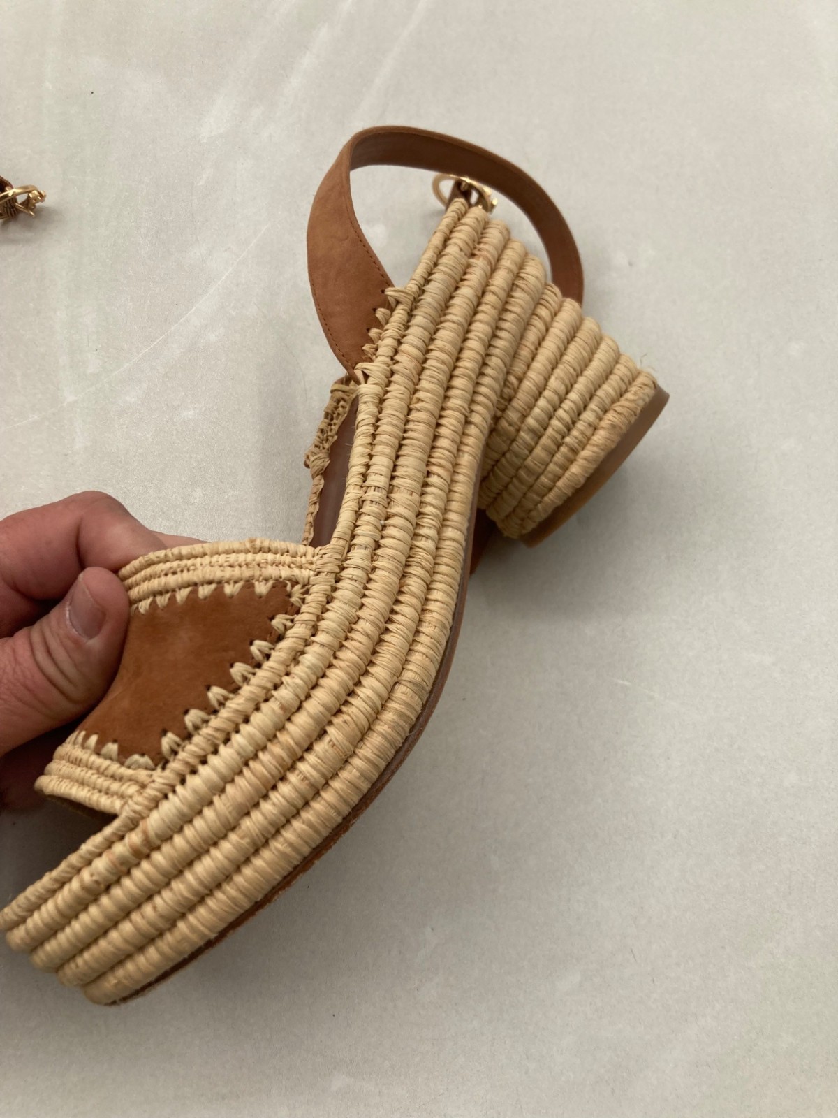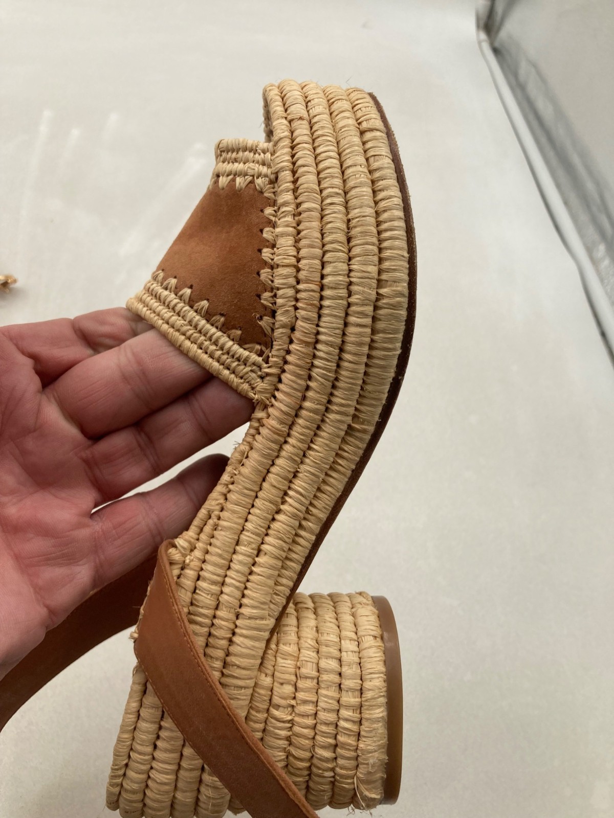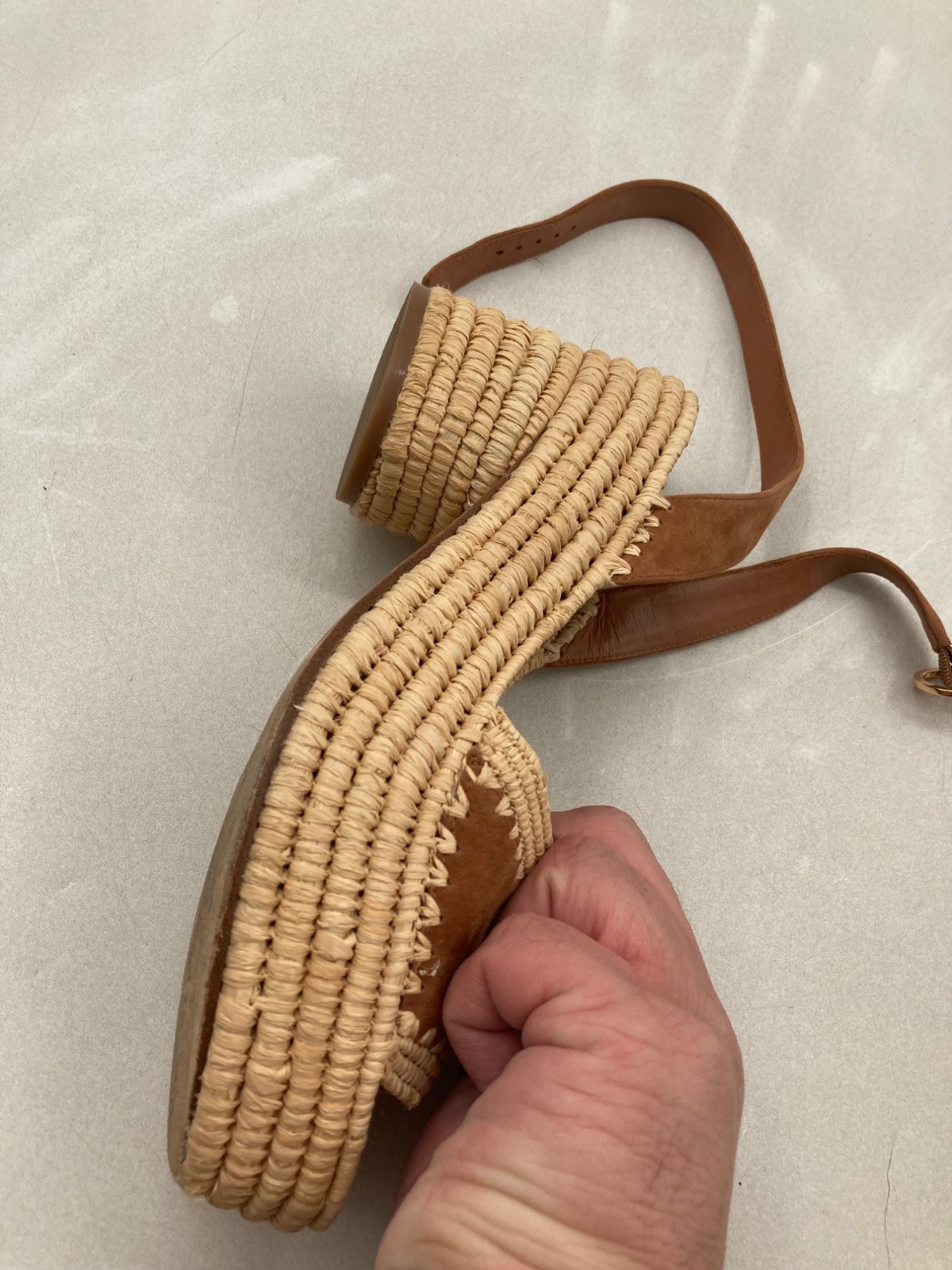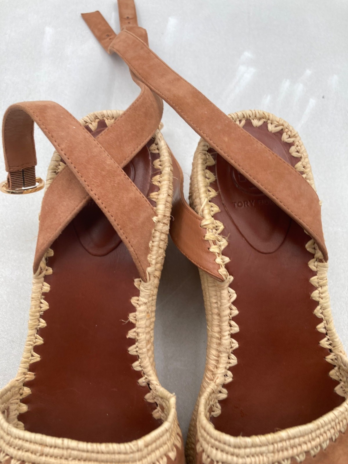 TORY BURCH ARIANNE PLATFORM ANKLE STRAP SANDALS SIZE 9M BROWN IN COLOR