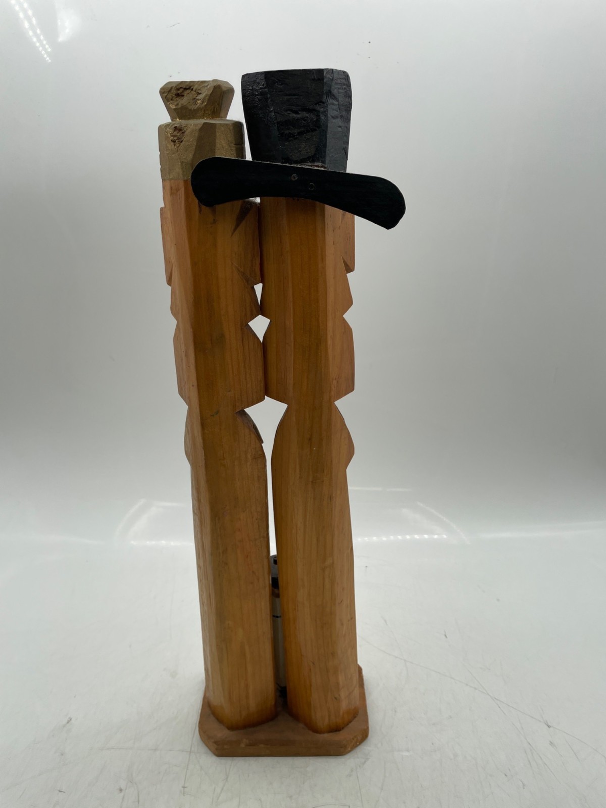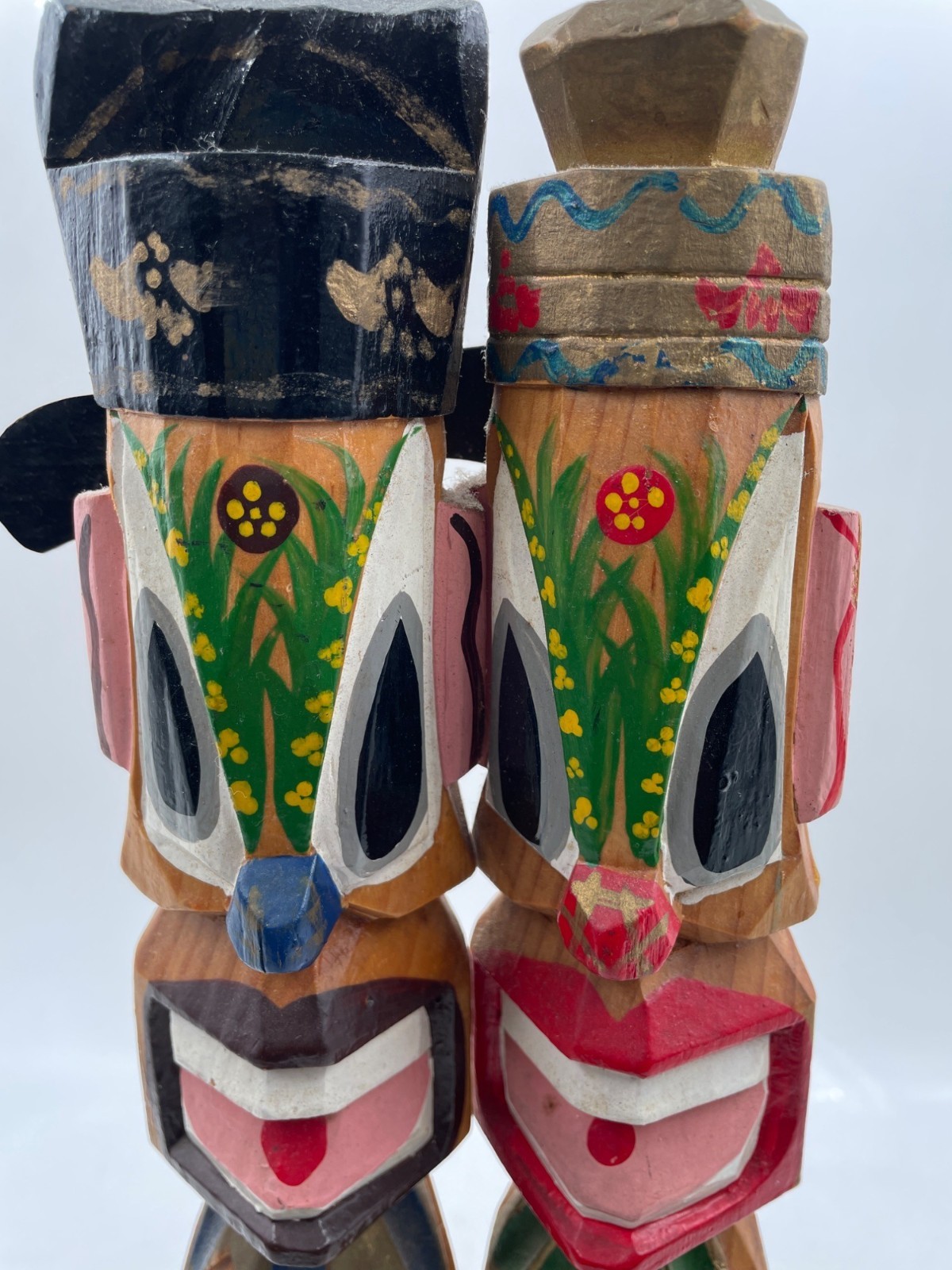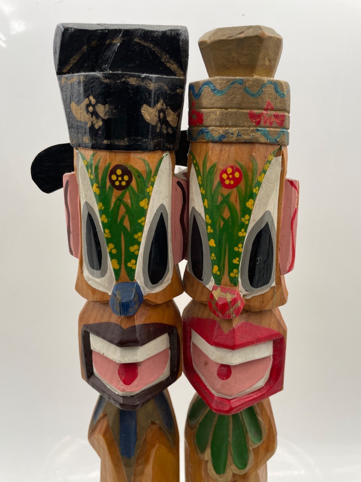 Totem Pole Korean 10" Carved wood Jangseung Village Couple Duck Mask Officiant