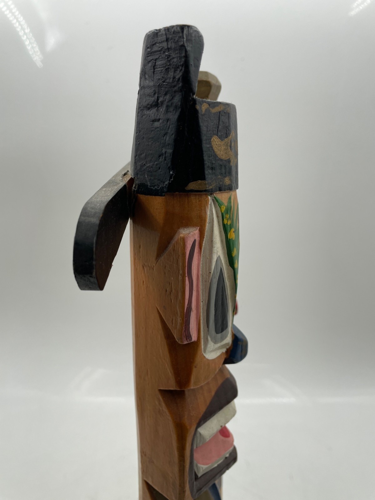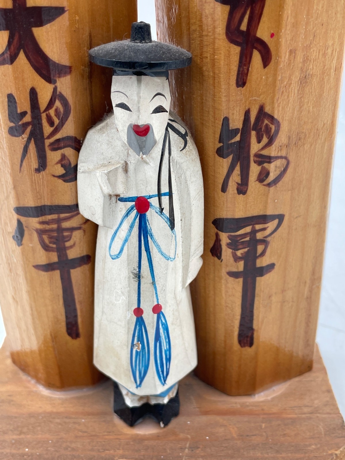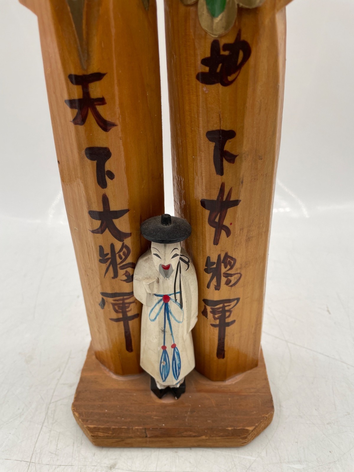 Totem Pole Korean 10" Carved wood Jangseung Village Couple Duck Mask Officiant