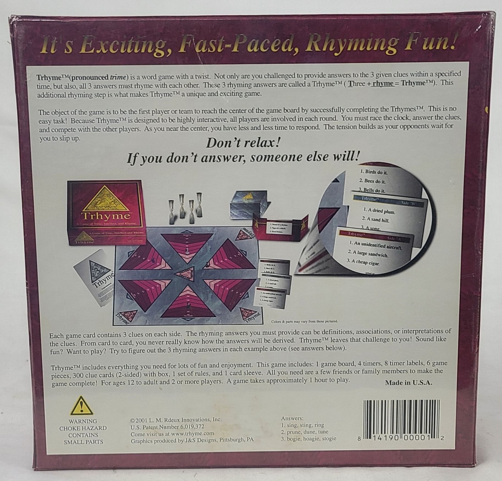 Trhyme Board Game - A Game Of Time Intellect & Rhyme