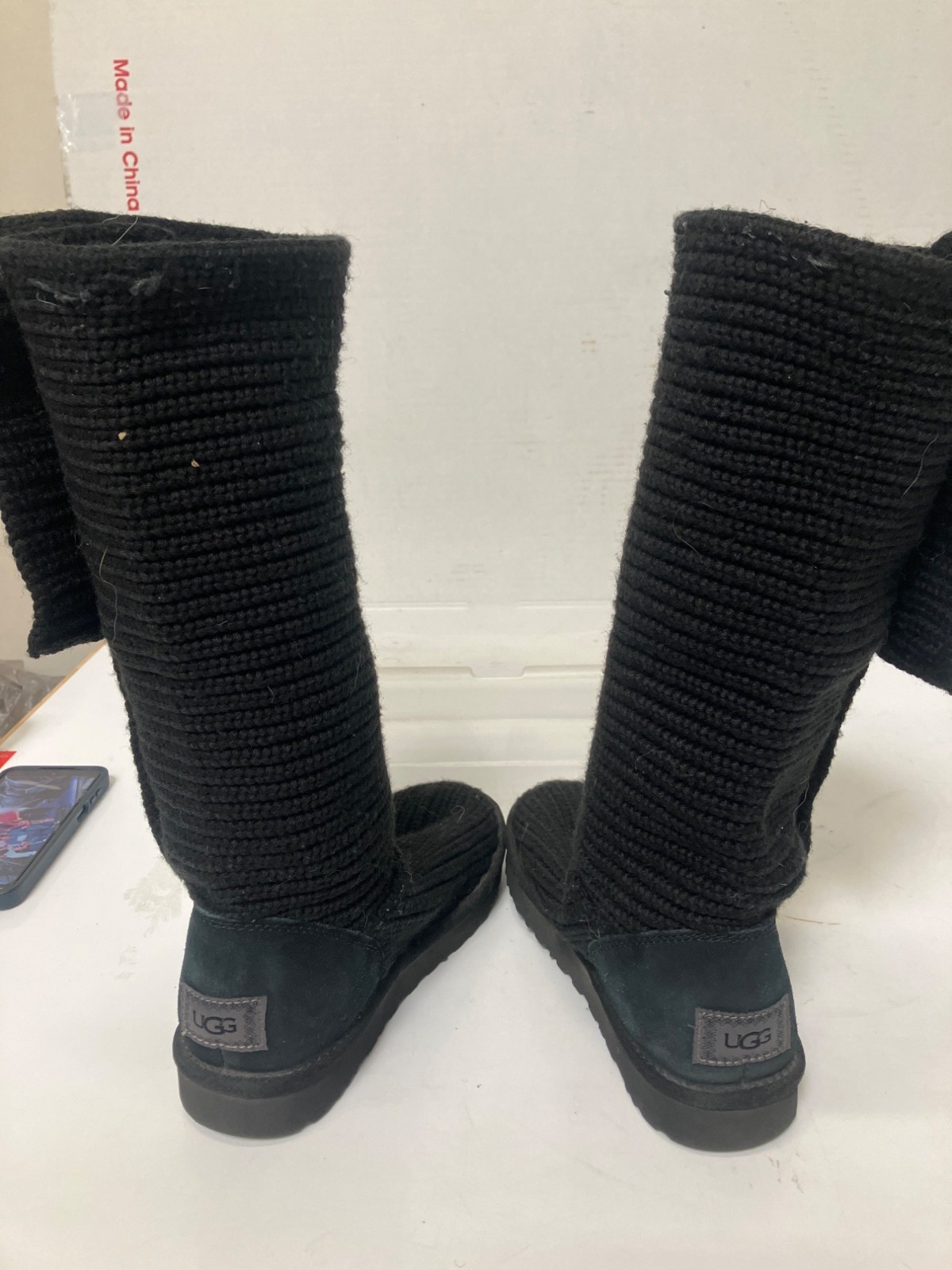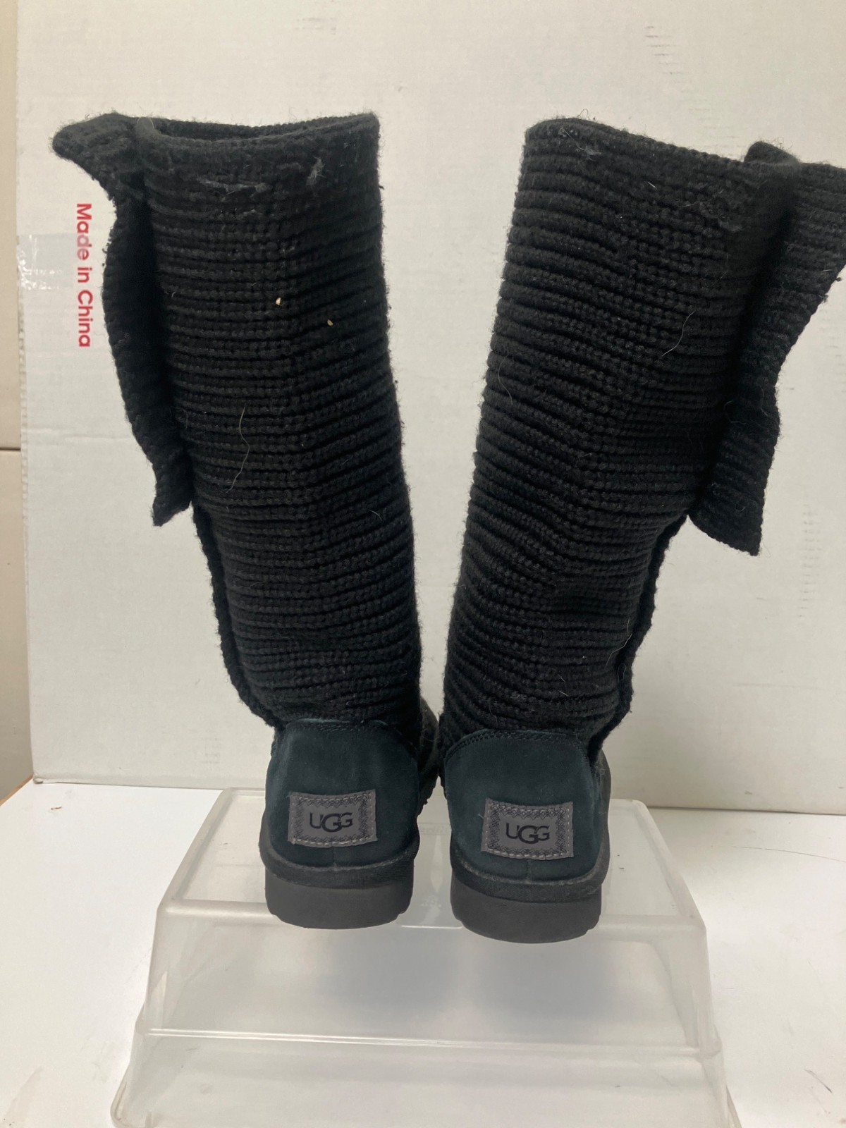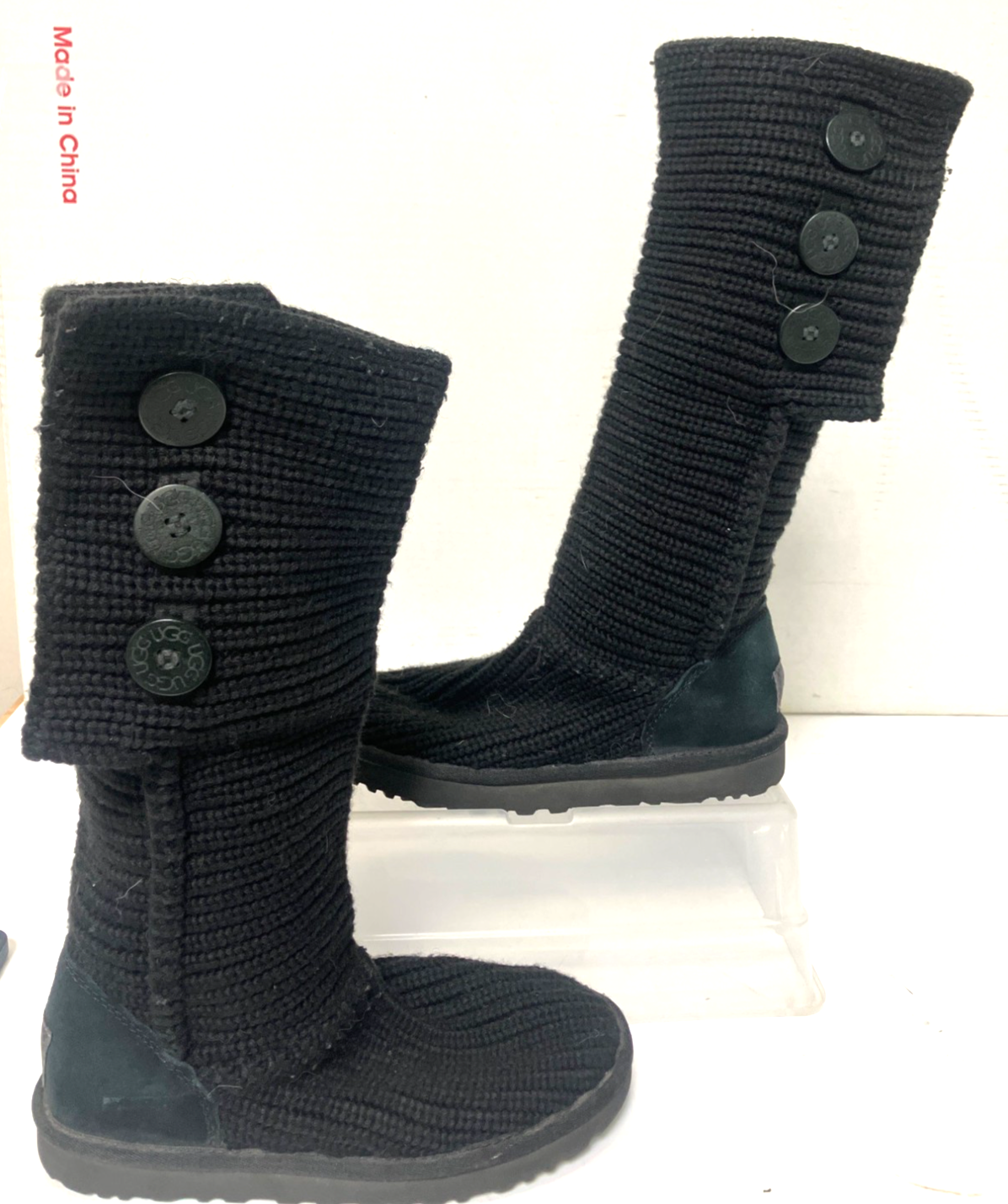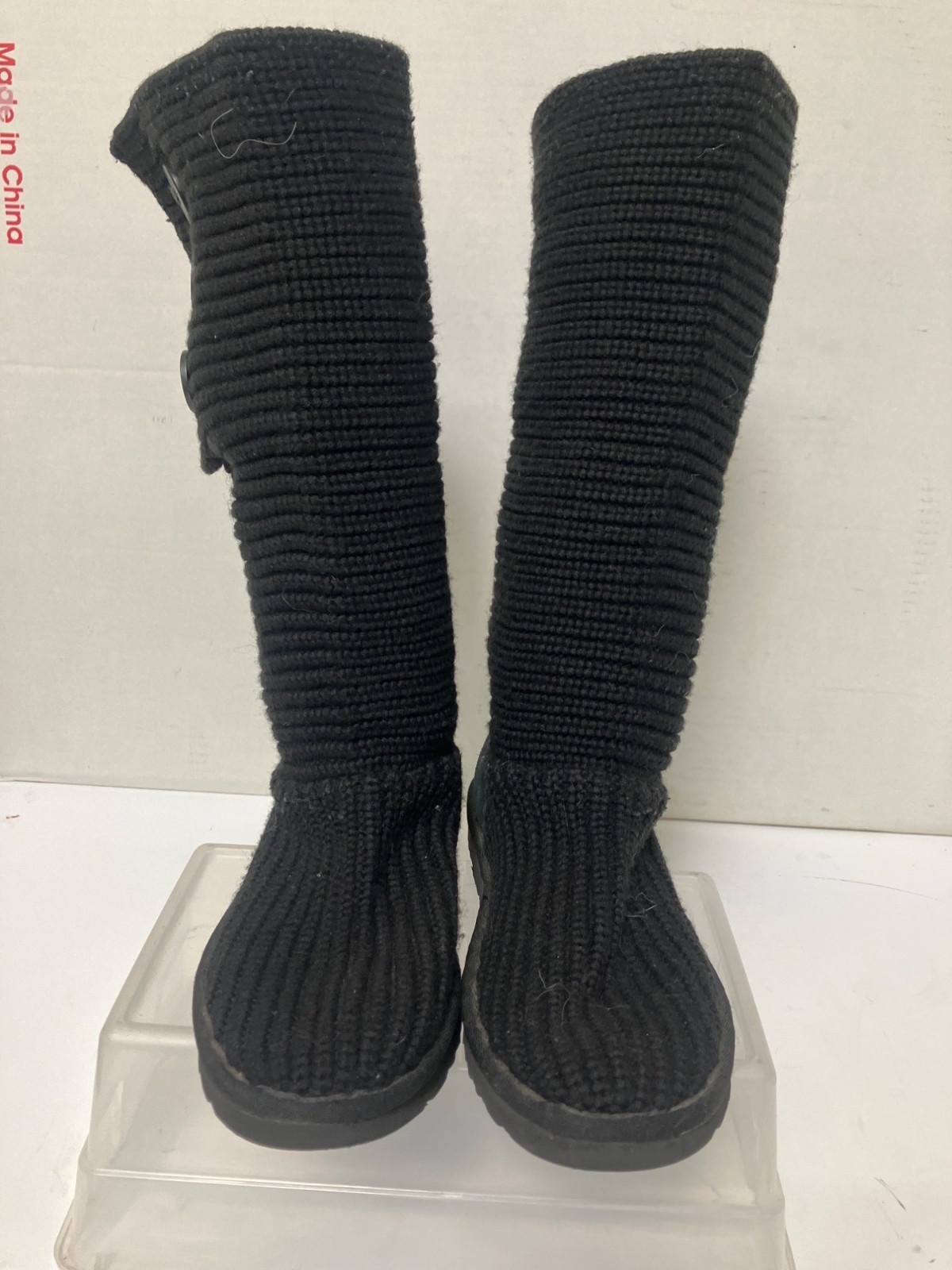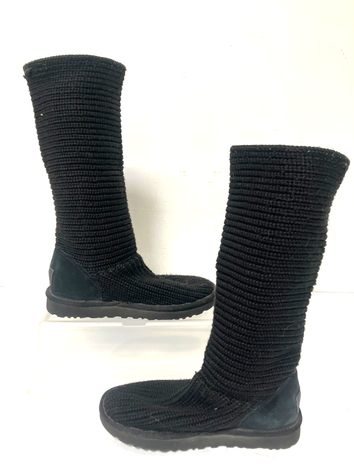 UGG Australia Womens Classic Cardy Black Knit Boots - Size-8