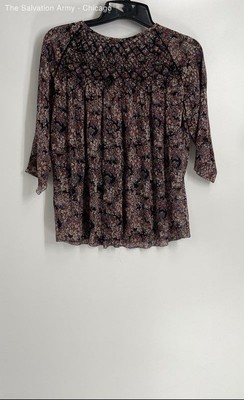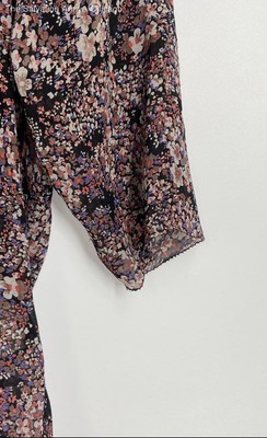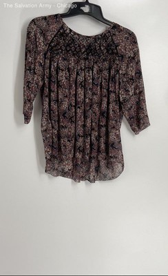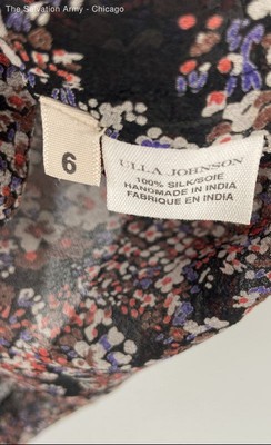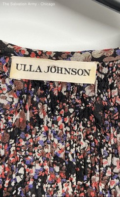 Ulla Johnson Womens Black Floral Round Neck 3/4 Sleeve Blouse Top Size 6