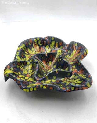 Unique Multicolor Vibrant Ruffled Hand Made Art Decorative Collectible Ashtray