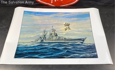 USS Indianapolis Blue Warship Ocean Scene Signed 2006 Reprint Art Poster