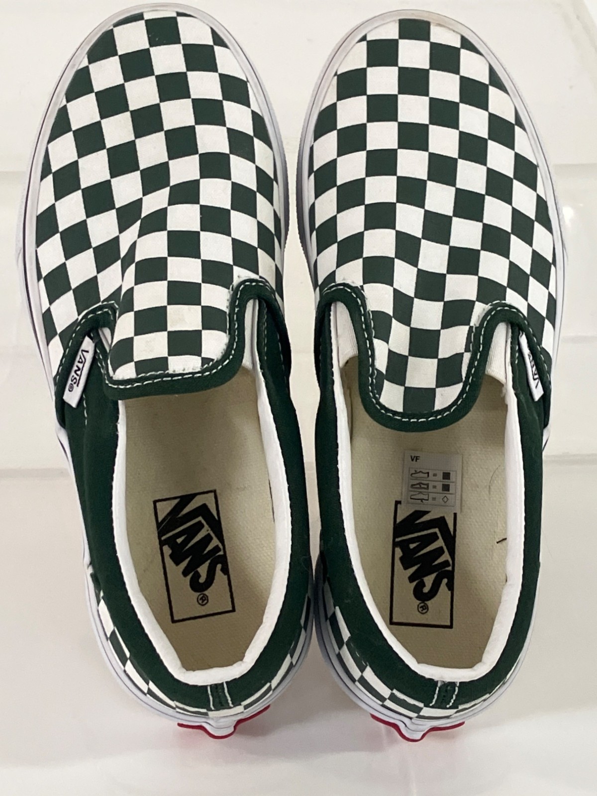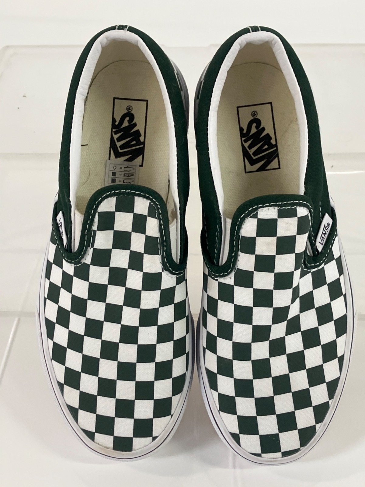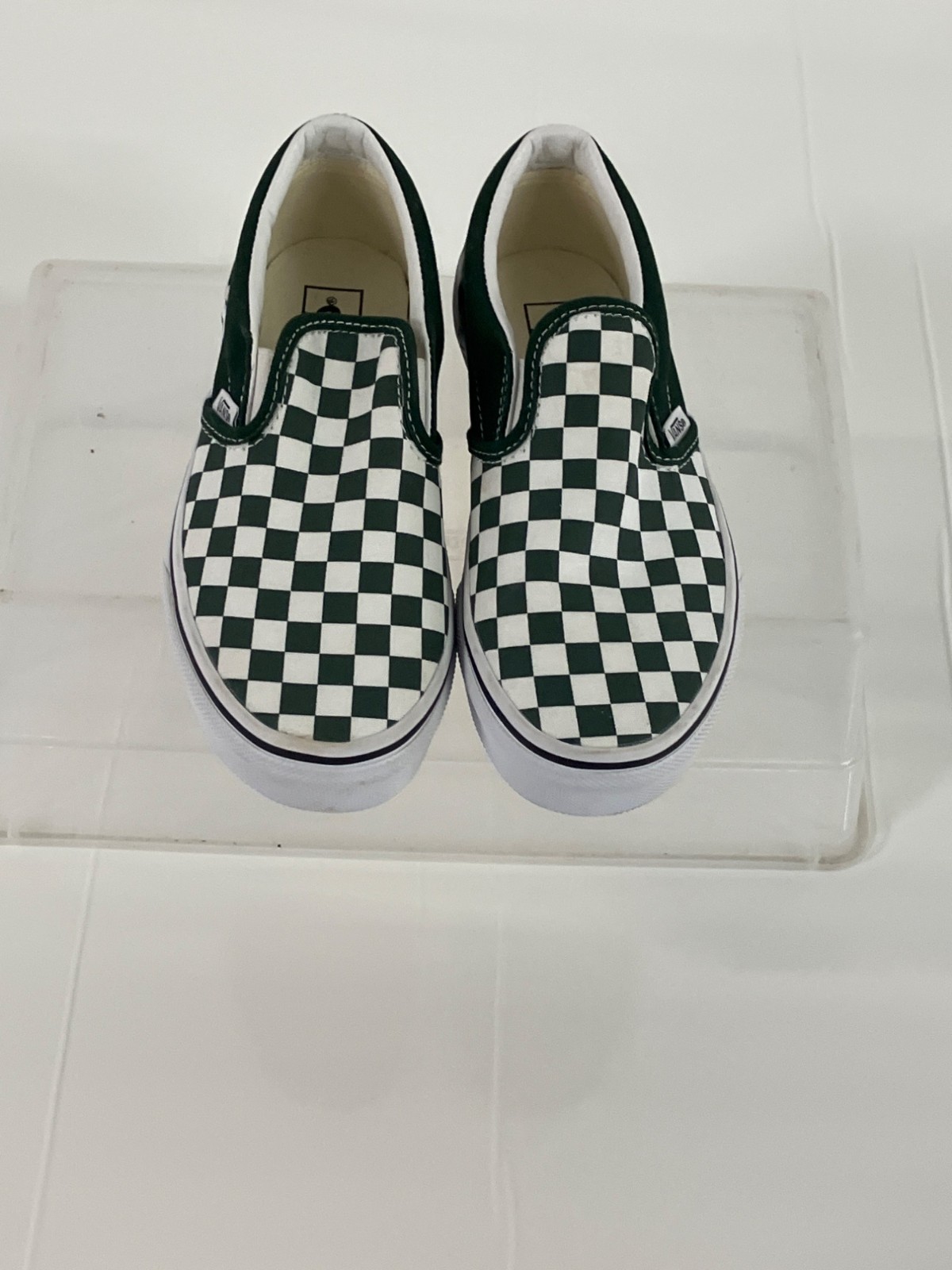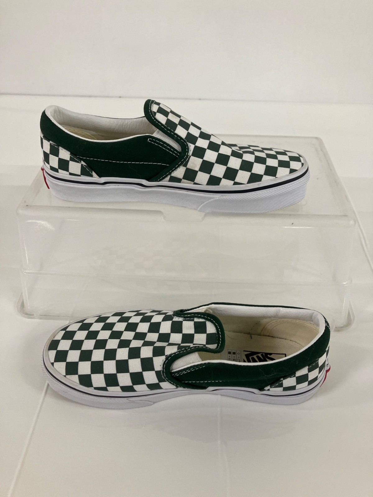 Vans Kids Green Checkered Slip On Casual Shoes (size 3)