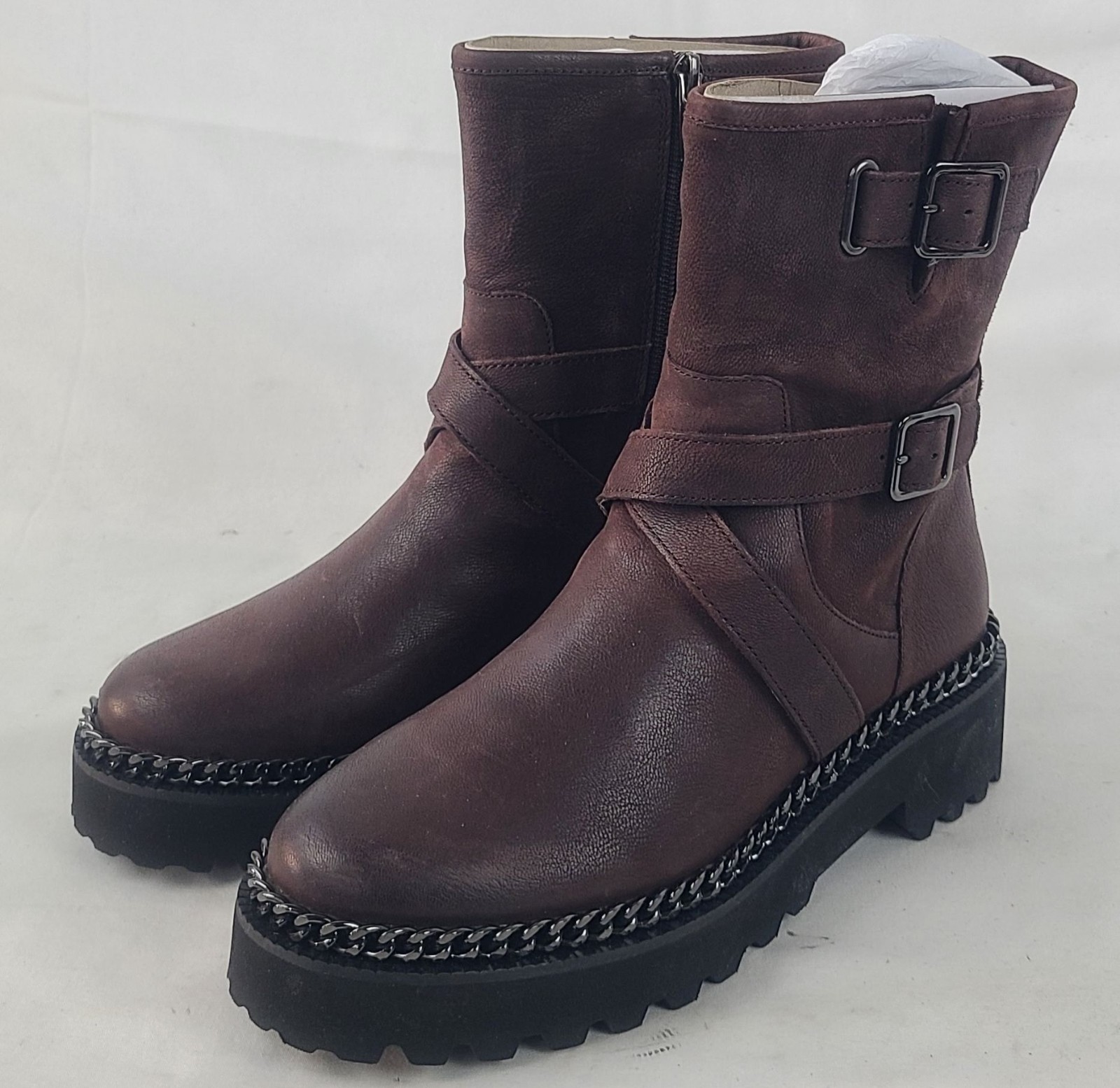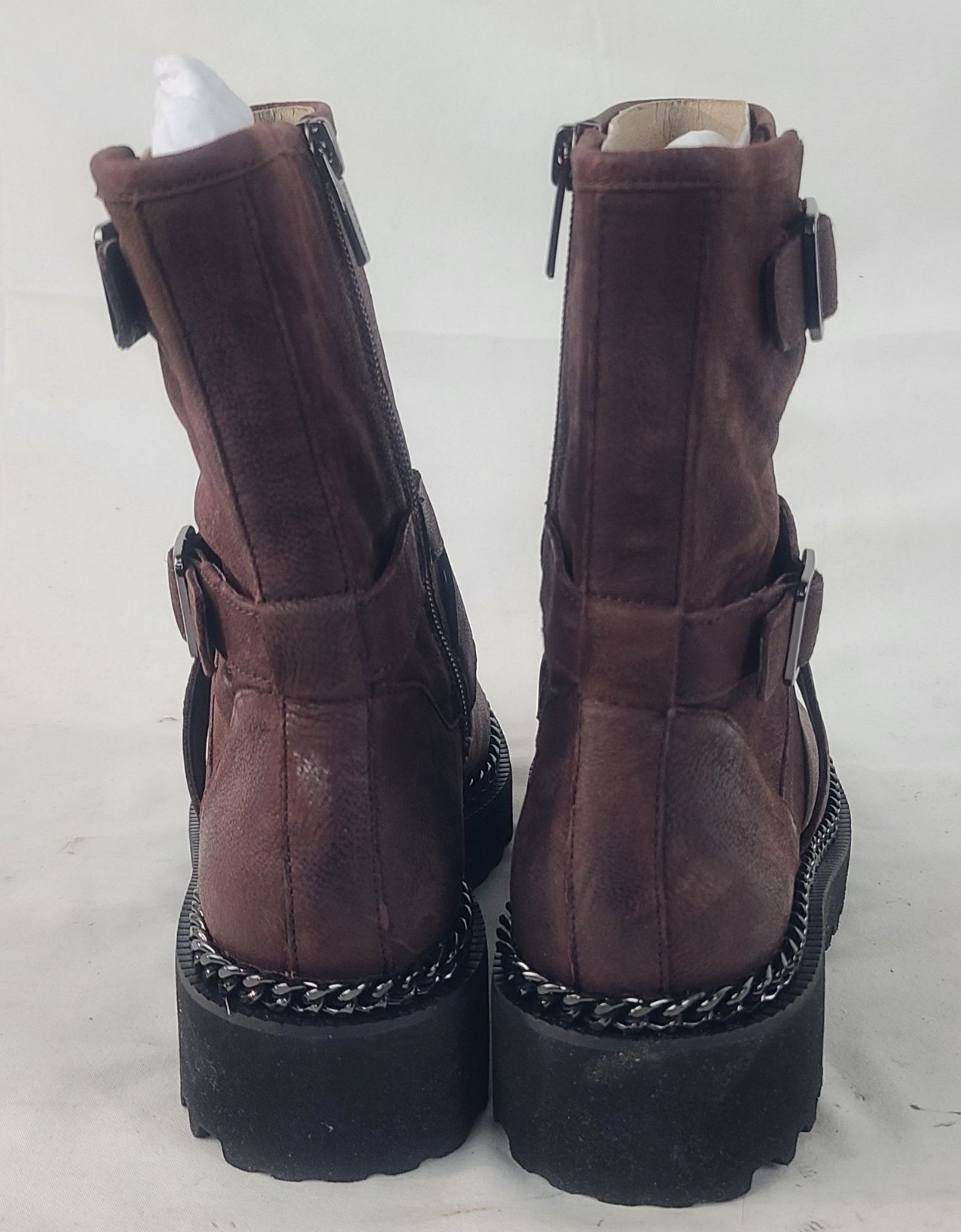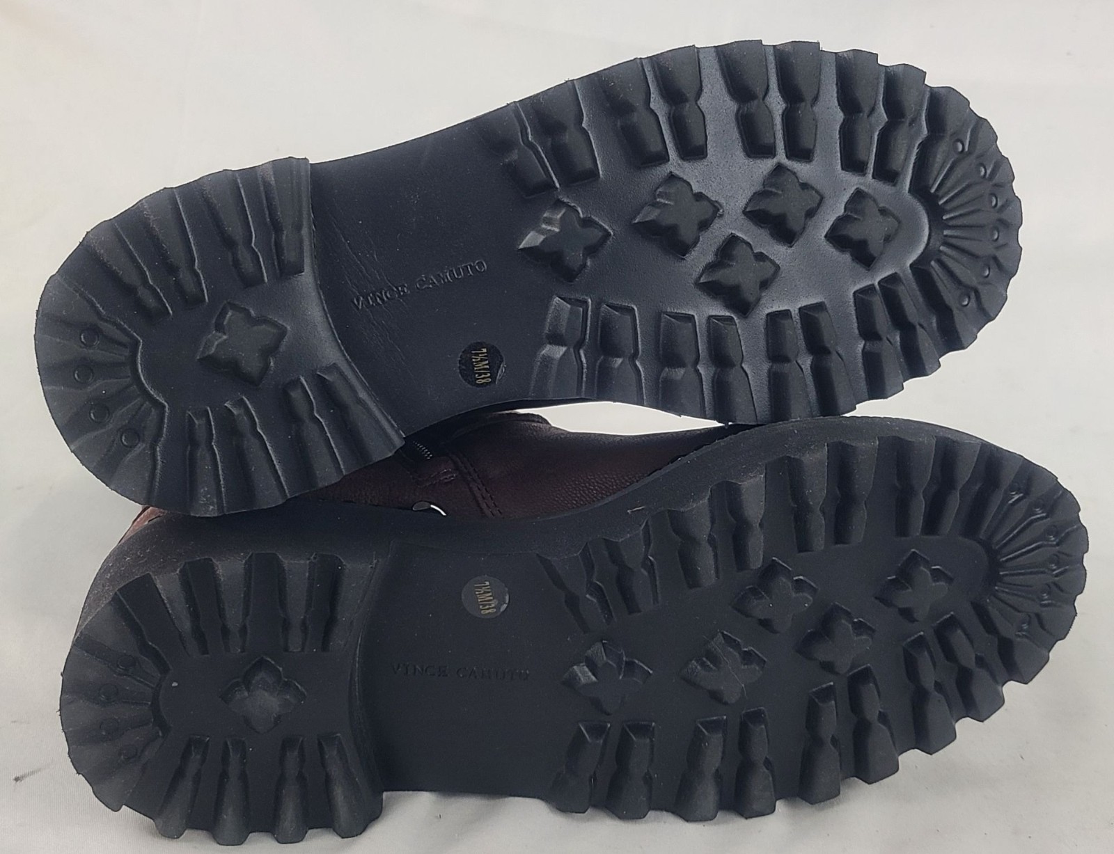 Vince Camuto Brown Leather Chain Trim Lug Sole Boots Women 7.5 Stylish & Durable