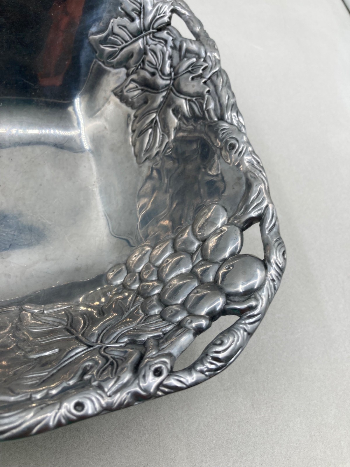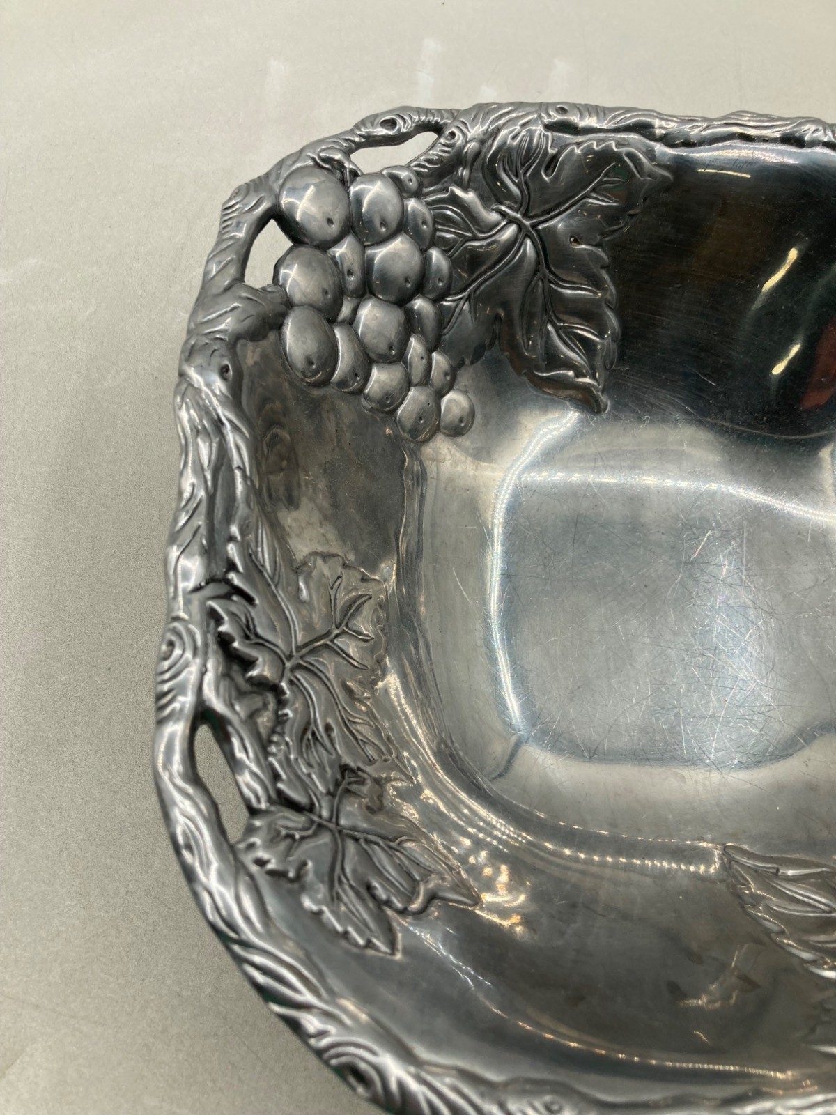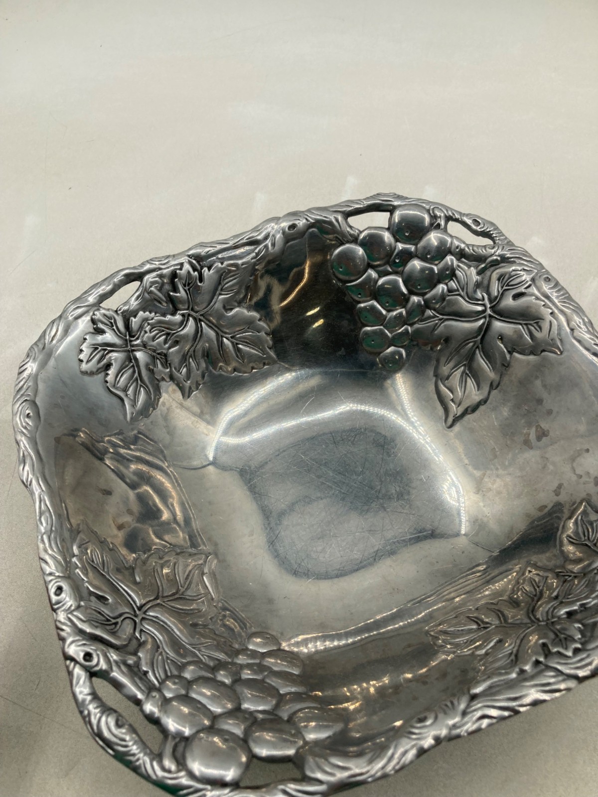 VINTAGE 2001 ARTHOR COURT GRAPE LEAF SQUAR ALUMINUM BOWL