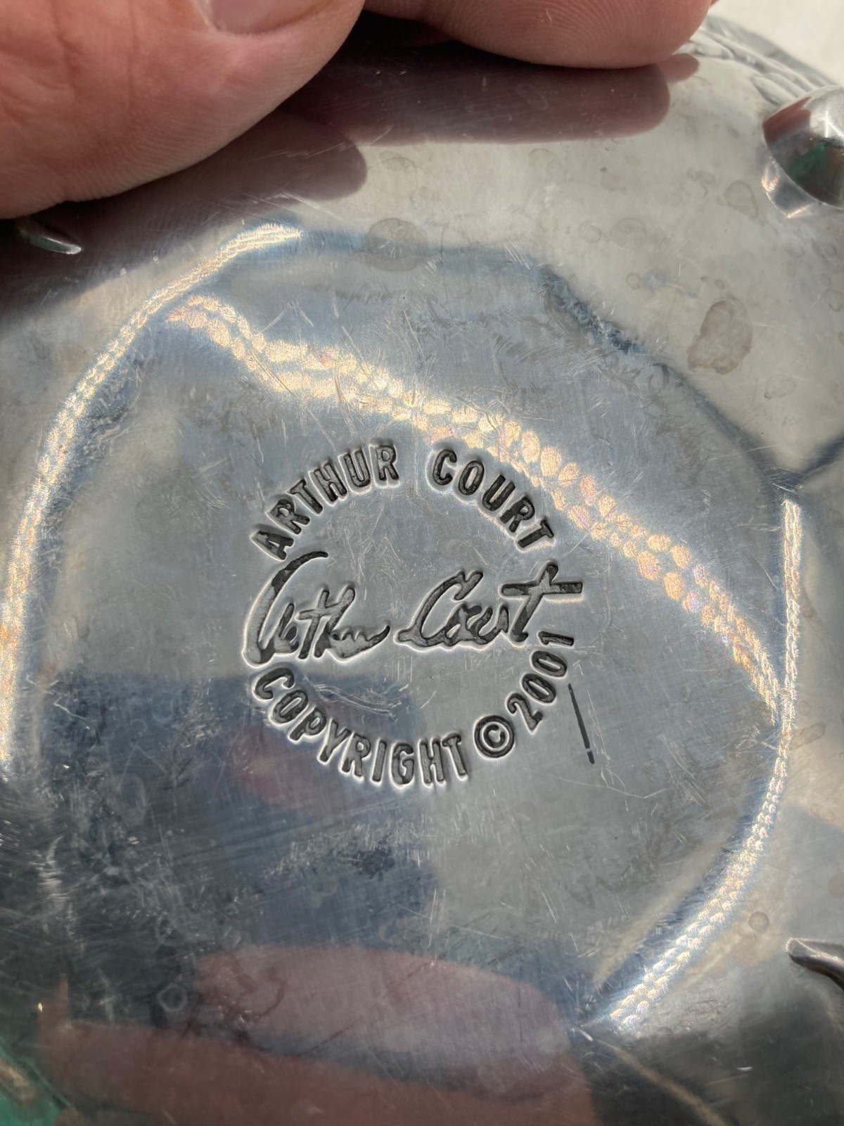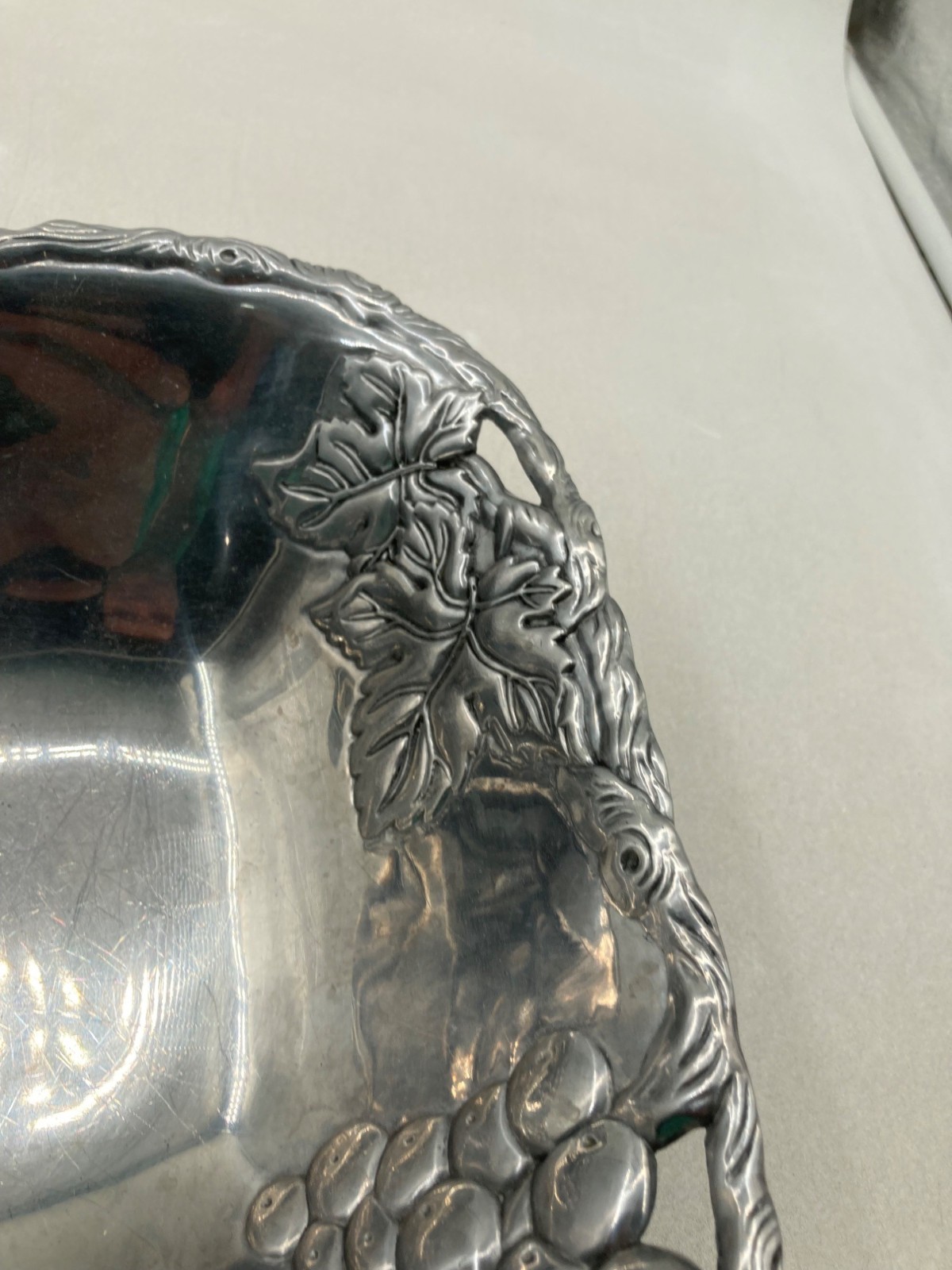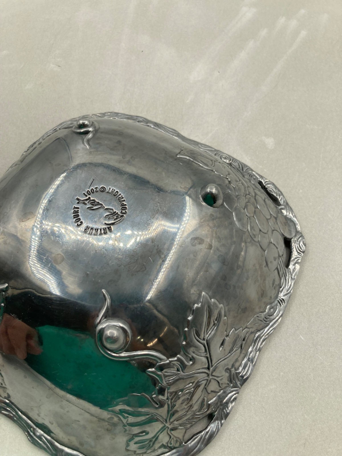 VINTAGE 2001 ARTHOR COURT GRAPE LEAF SQUAR ALUMINUM BOWL
