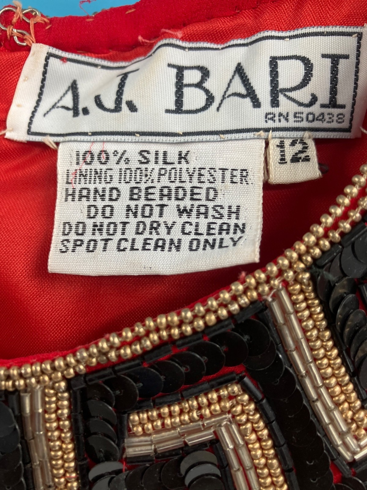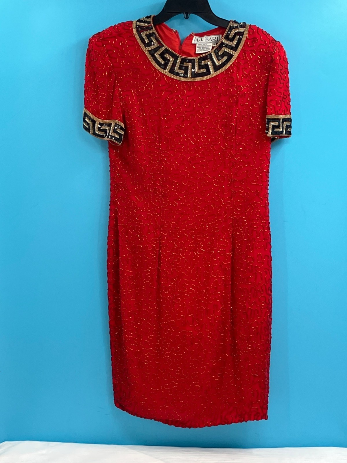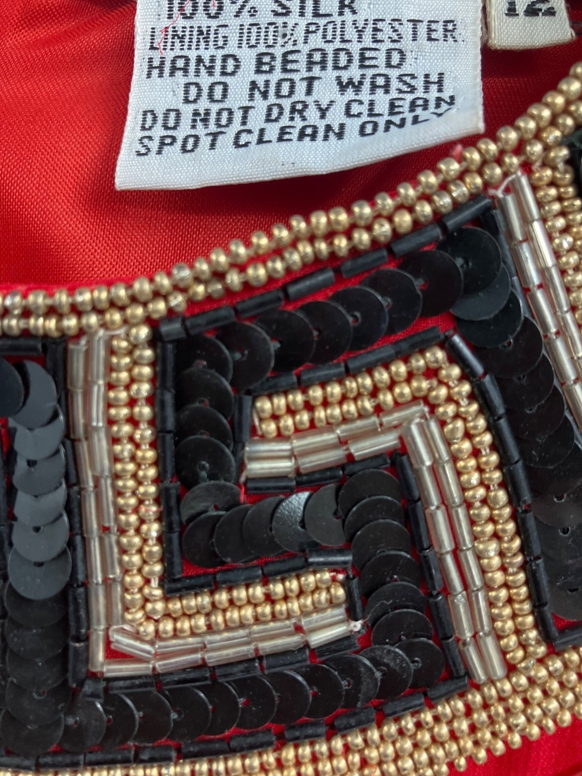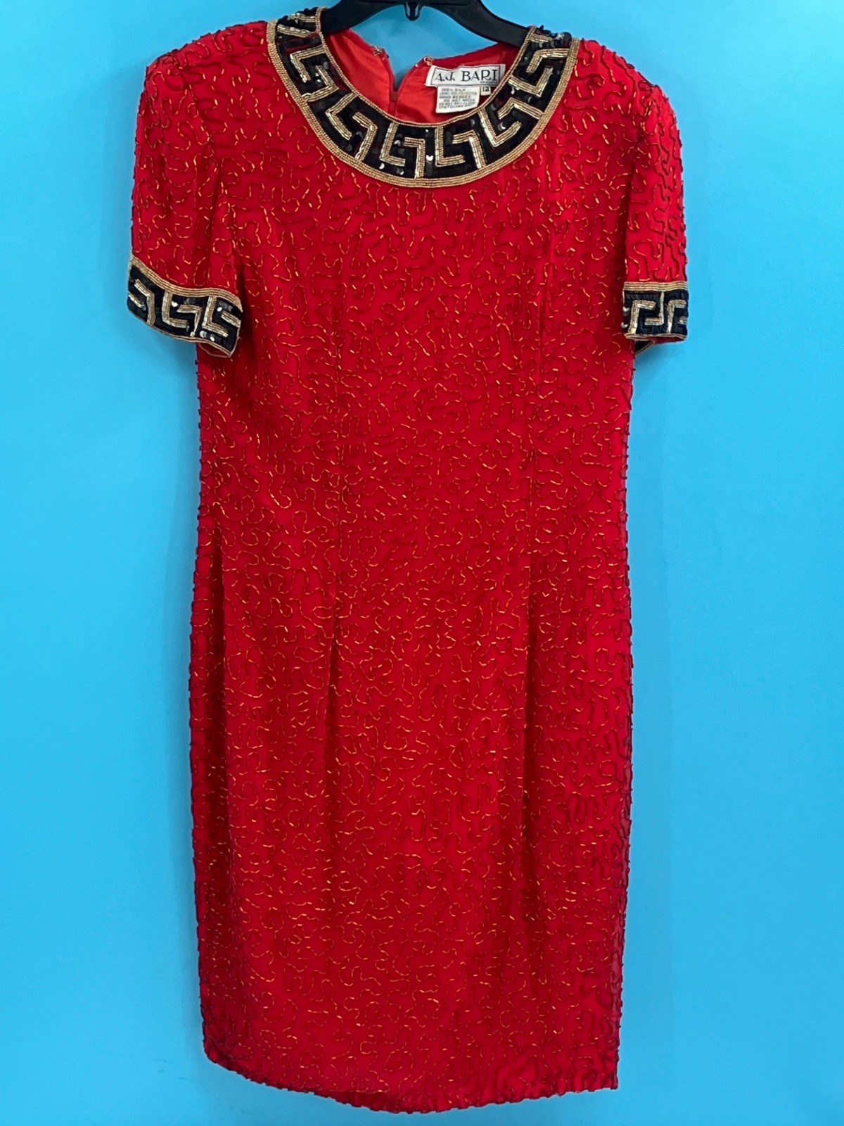 Vintage AJ Bari Red 100% Silk Hand Beaded Dress (size 12)