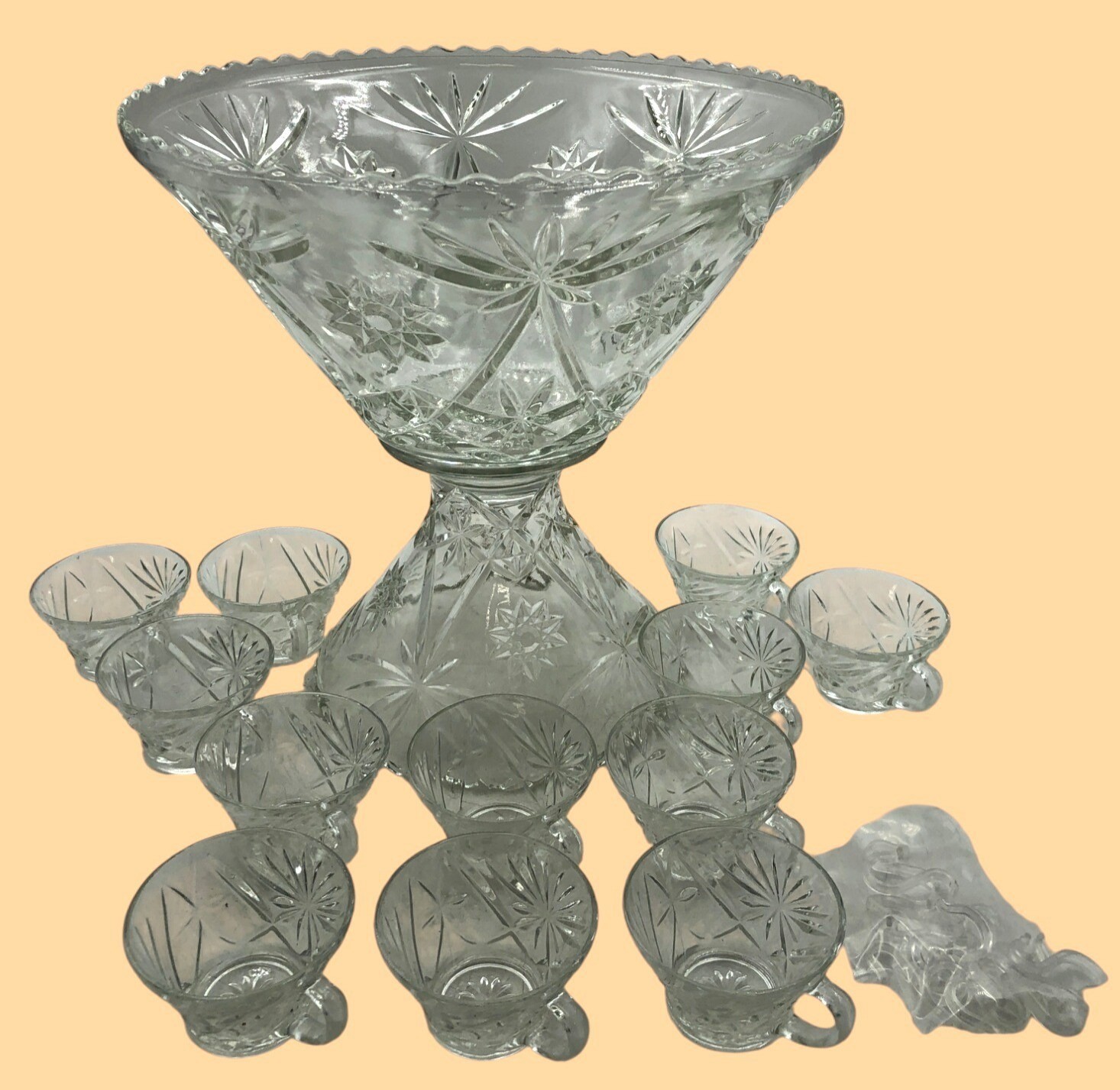 Vintage Anchor Hocking Punch Bowl Set: Early American Prescut Pattern