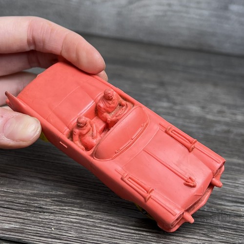 Vintage Auburn Pink Cadillac Convertible Rubber Toy Yellow Wheels 4”