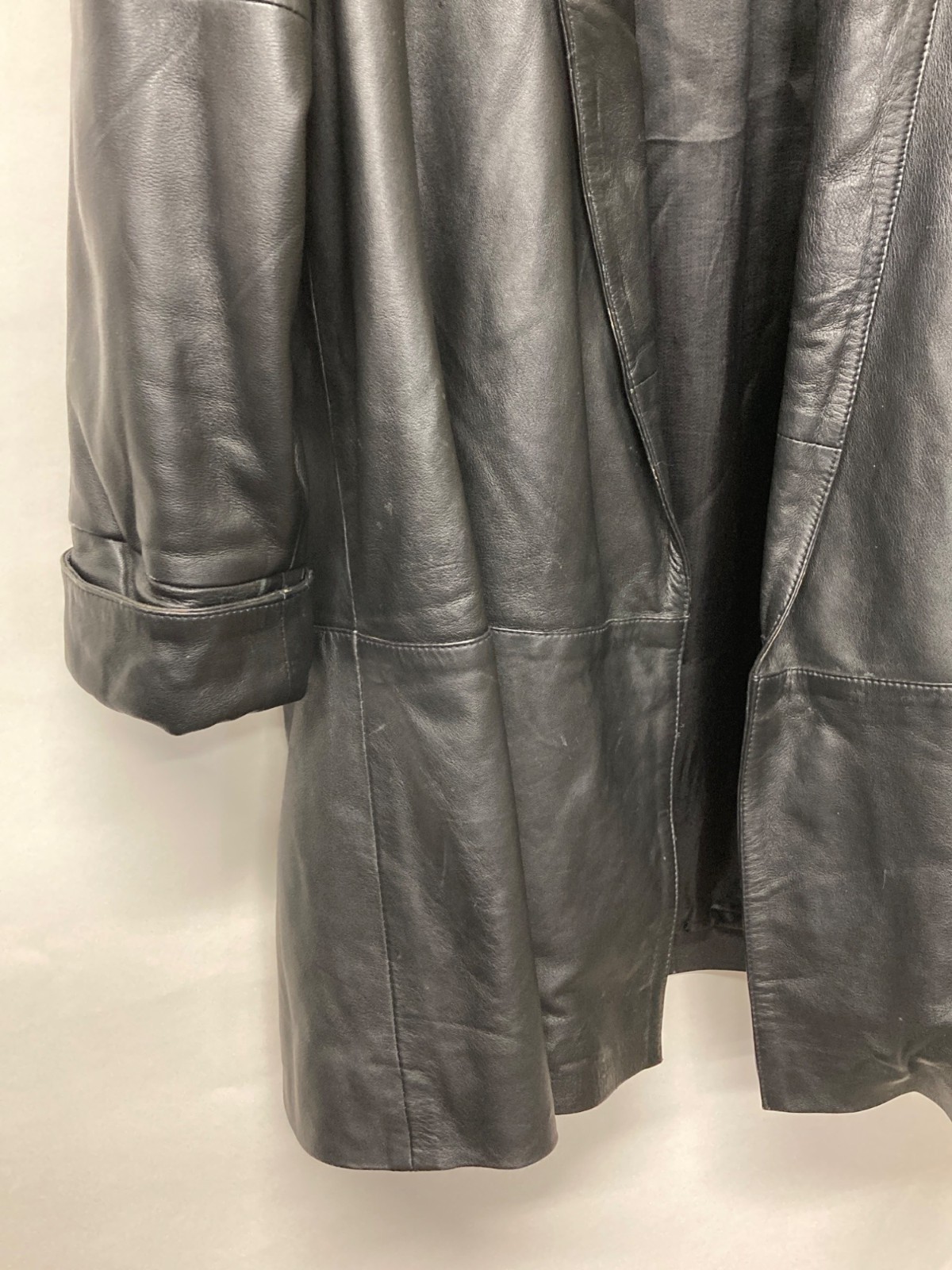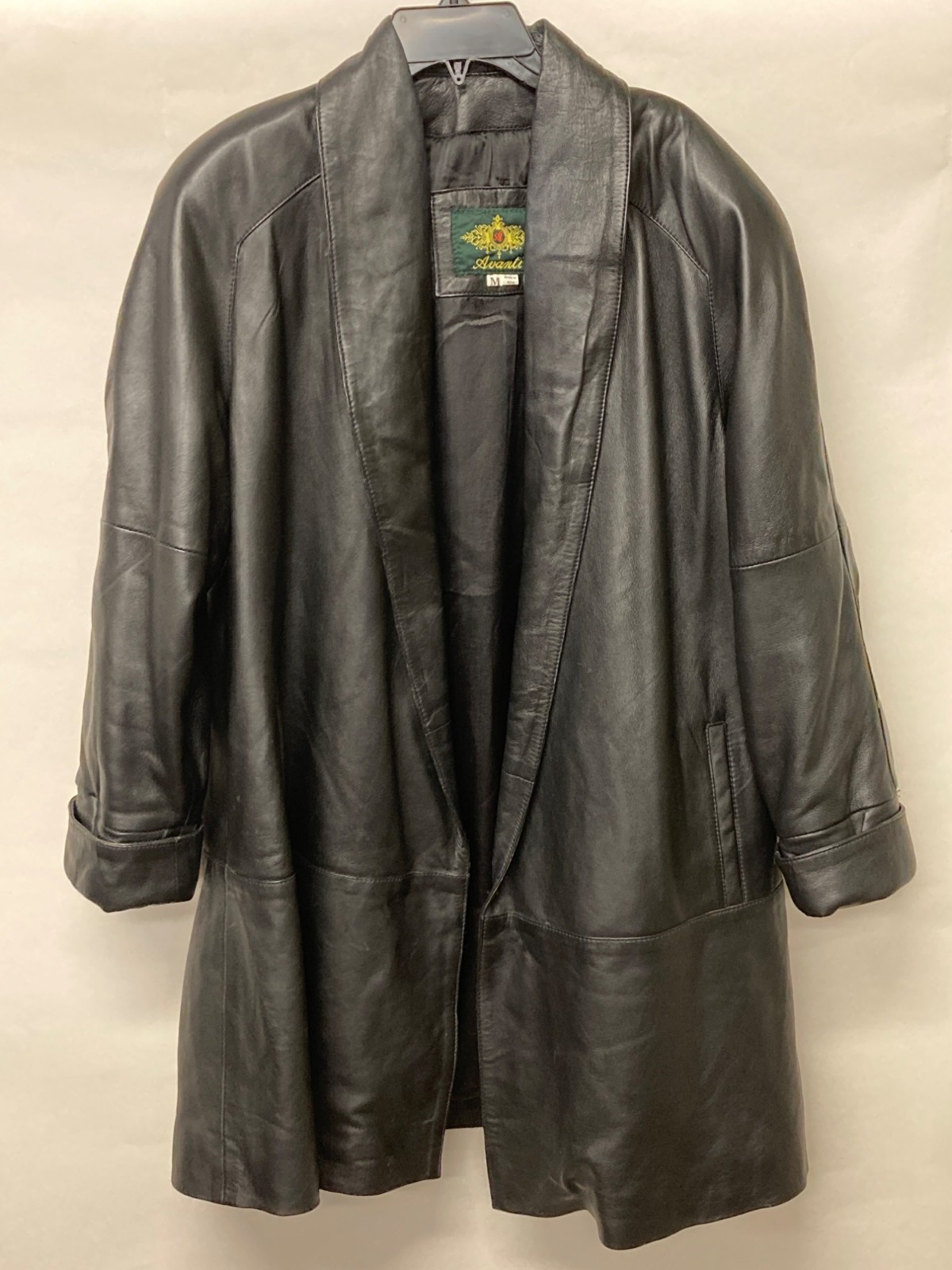 Vintage Avanti Black Leather Coat Made In India Open Front Leather Jacket