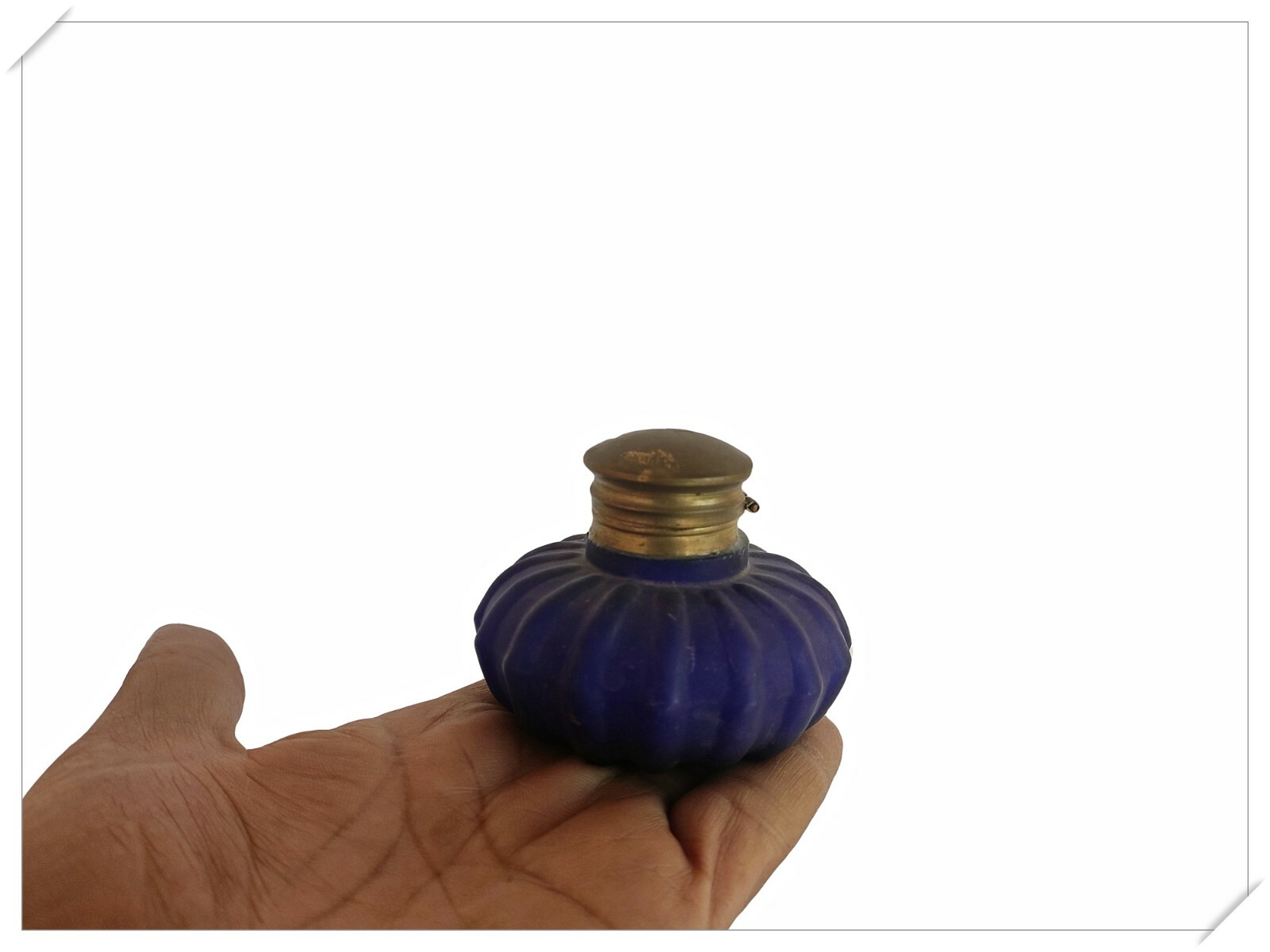 Vintage Beau melon Forme Encrier Bureau Encre Pot de Stylo Bien Avec Laiton