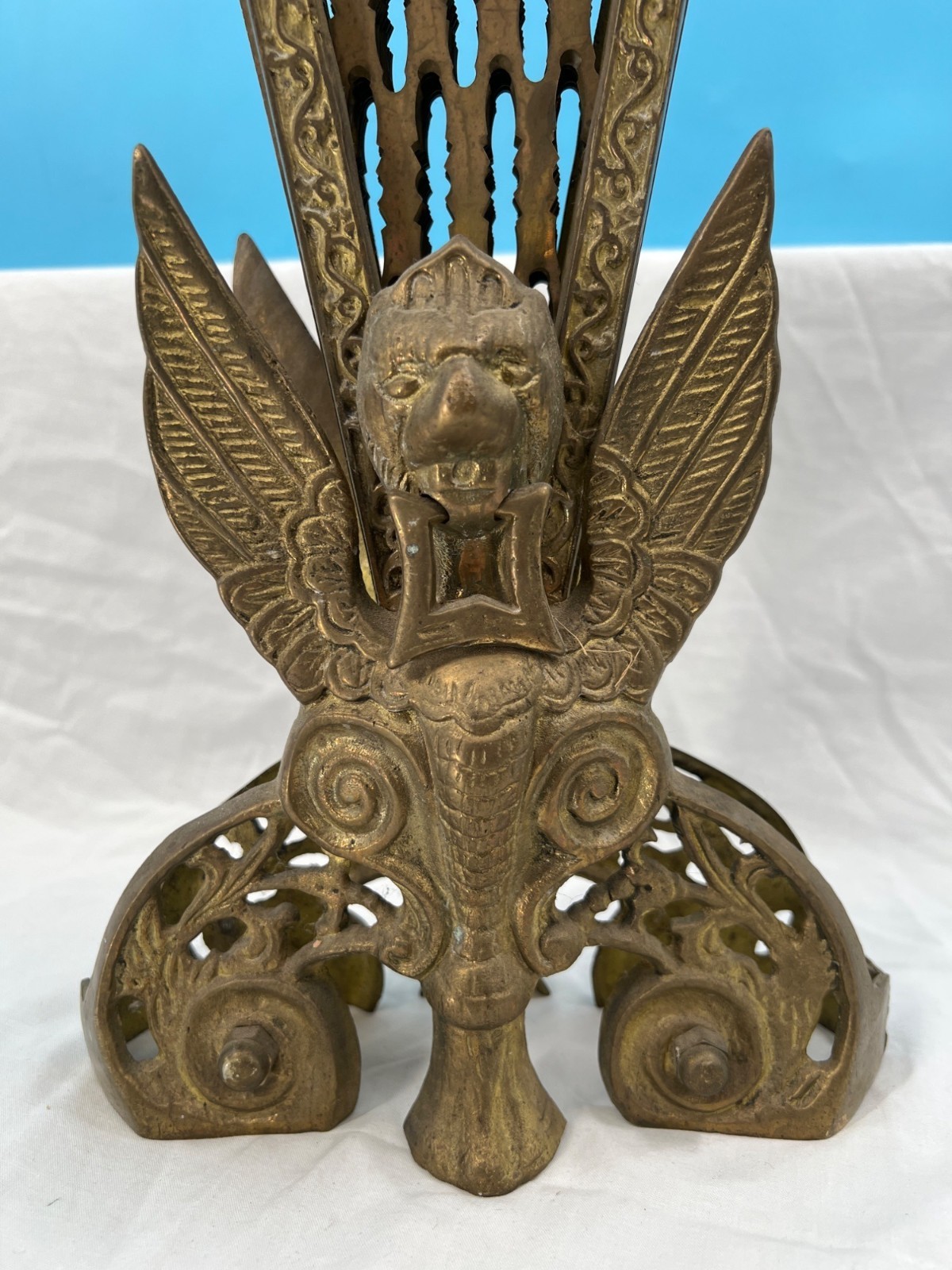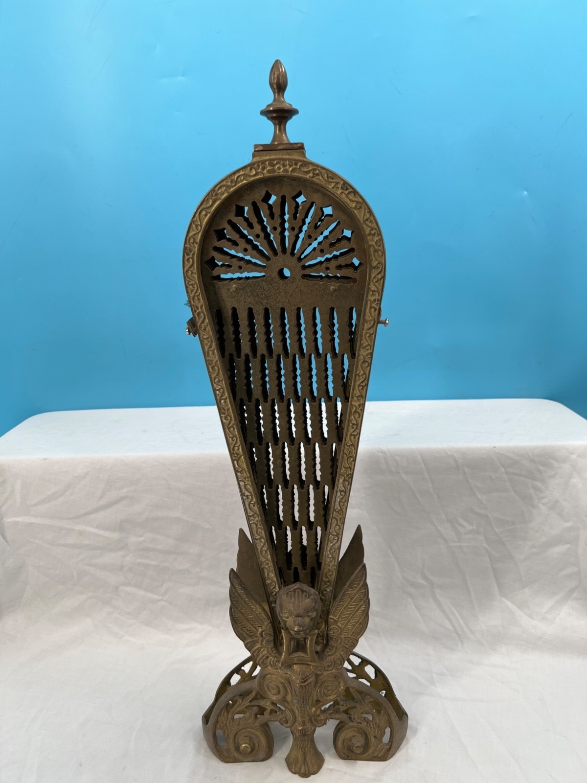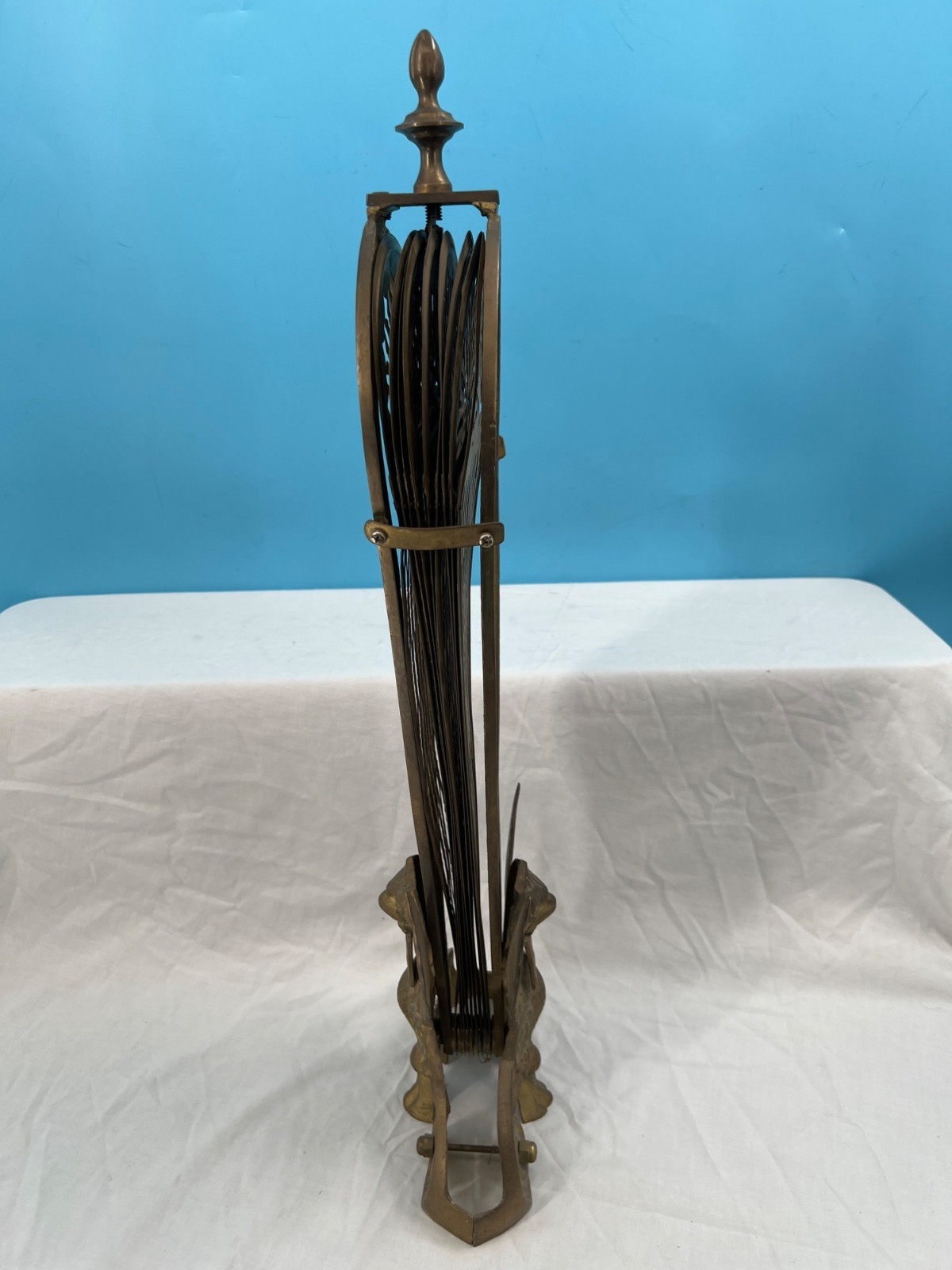 Vintage Brass Folding Peacock Fireplace Screen Fan Griffin Gargoyle