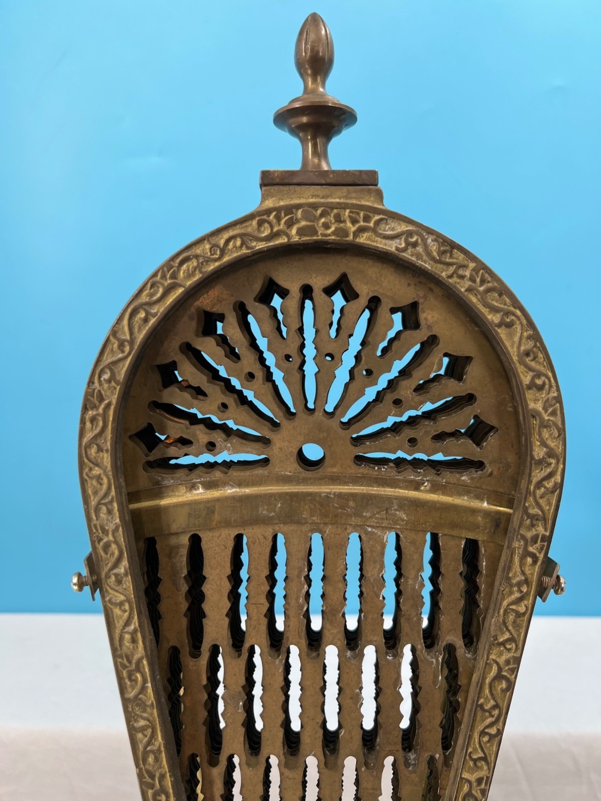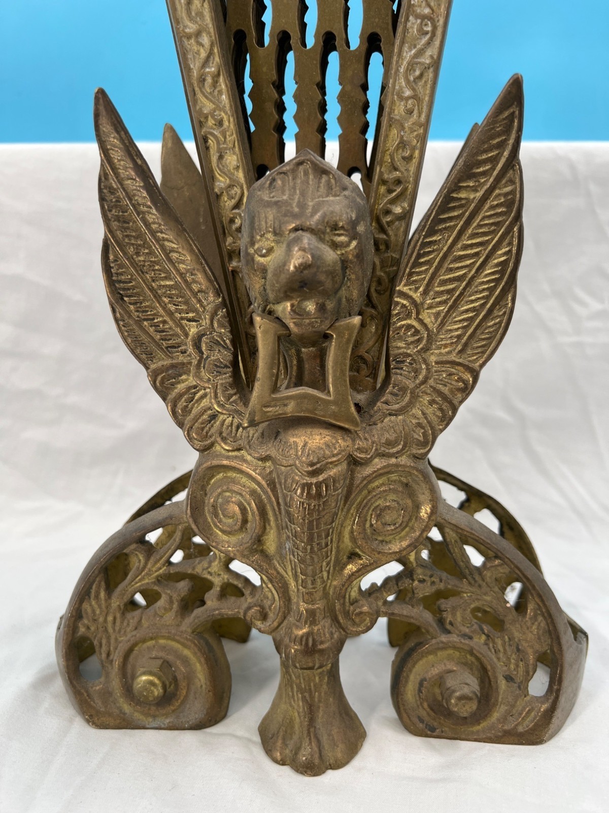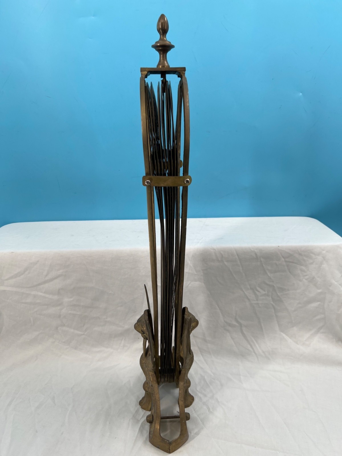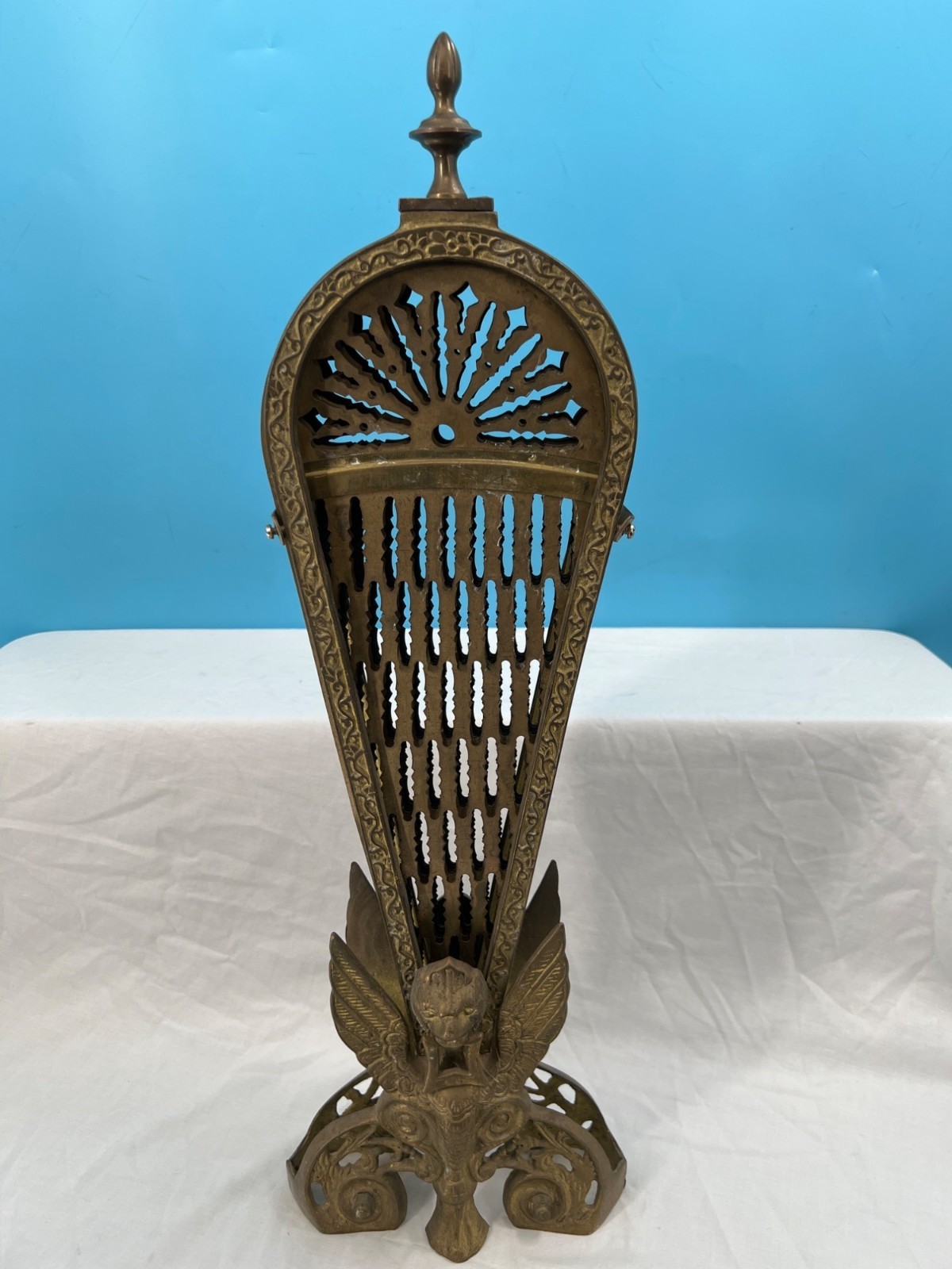 Vintage Brass Folding Peacock Fireplace Screen Fan Griffin Gargoyle