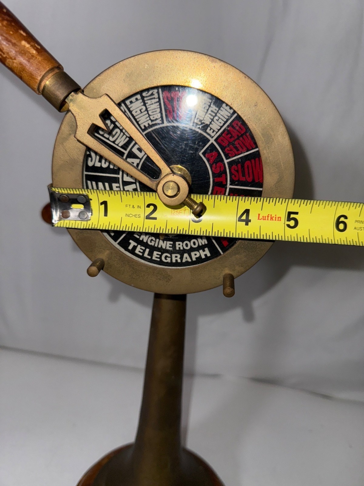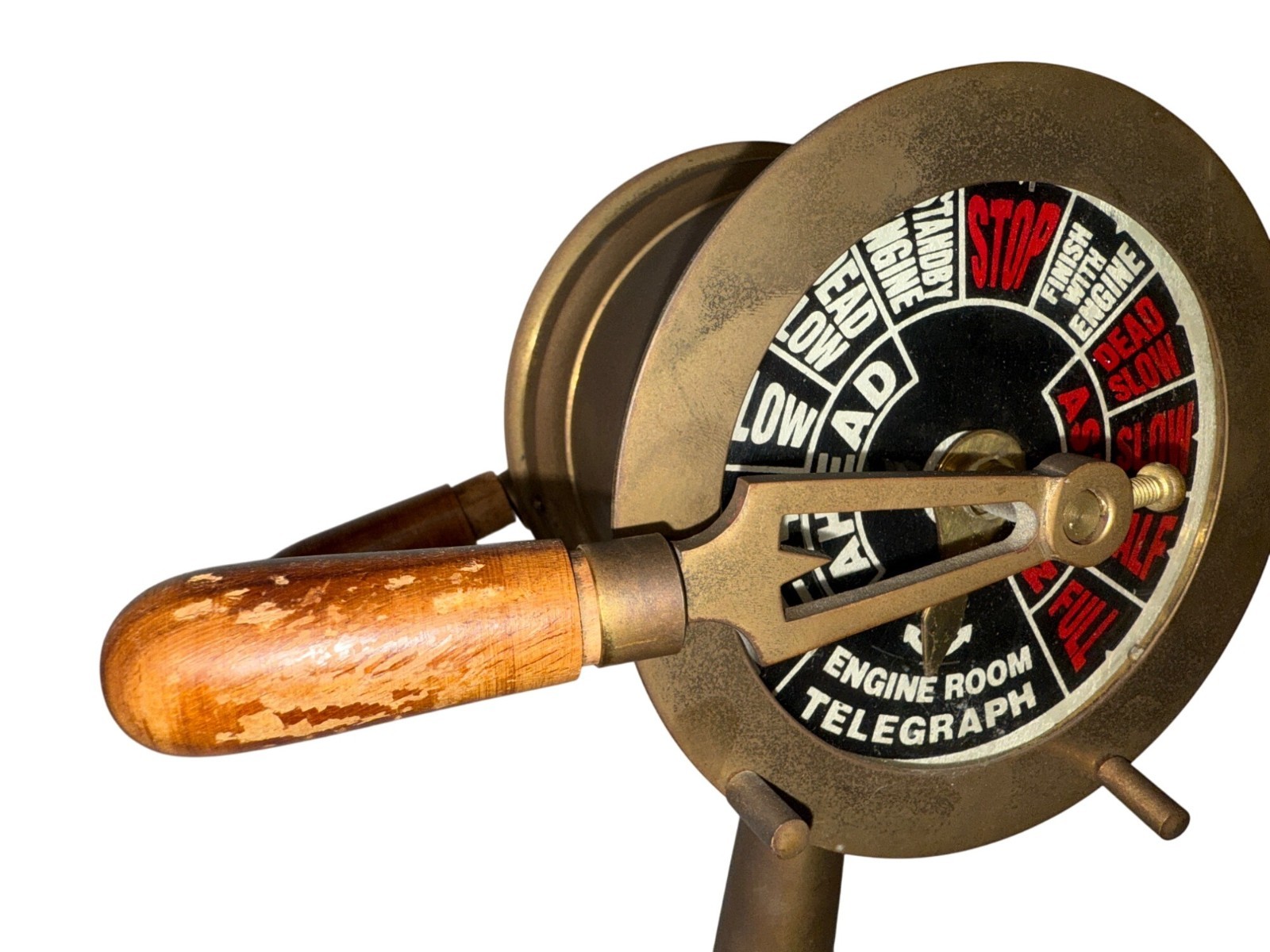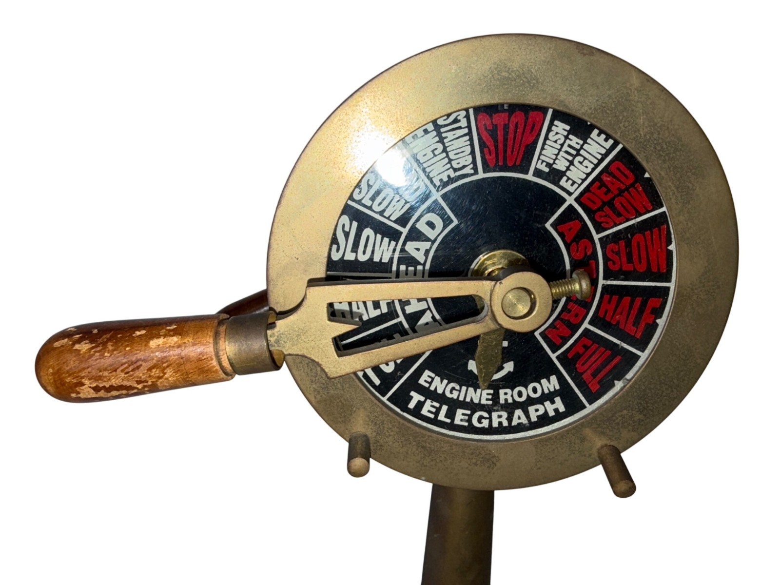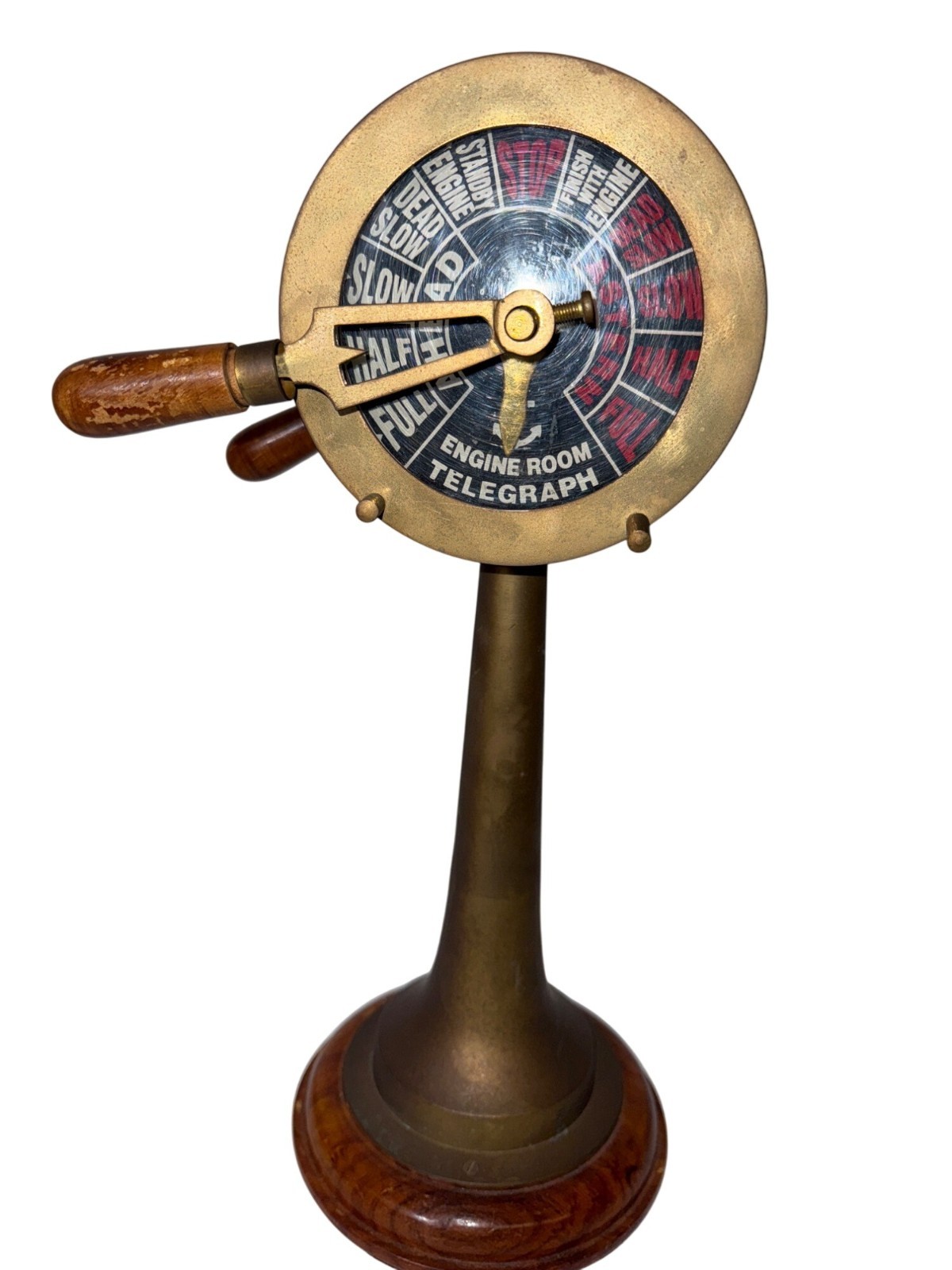 Vintage Brass Ships Engine Room Telegraph Replica With Wood Base