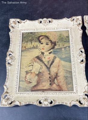 Vintage Cherry Jeffe Victorian Lady Framed Pictures Print Signed Huldah Lot Of 2