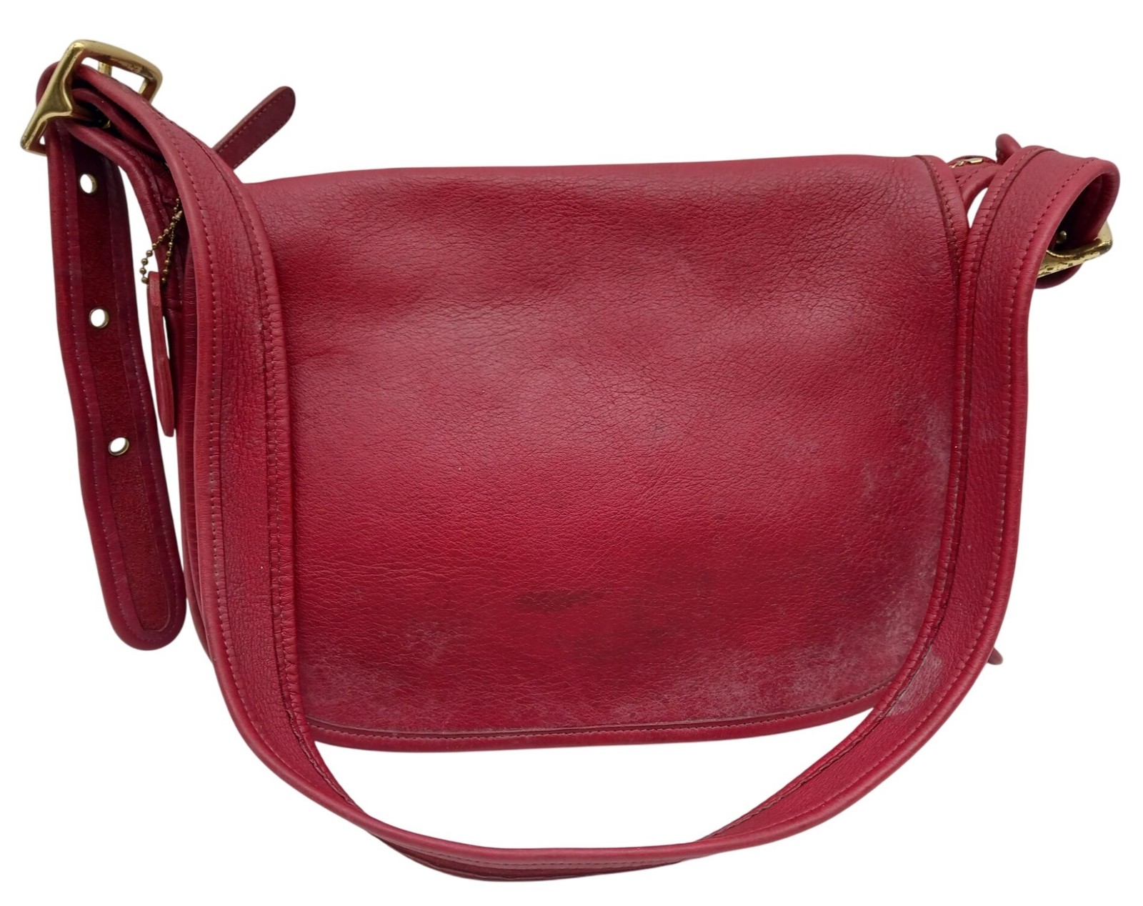 Vintage Coach Red Leather Shoulder Bag W/ Gold-Tone Hardware & Adjustable Strap
